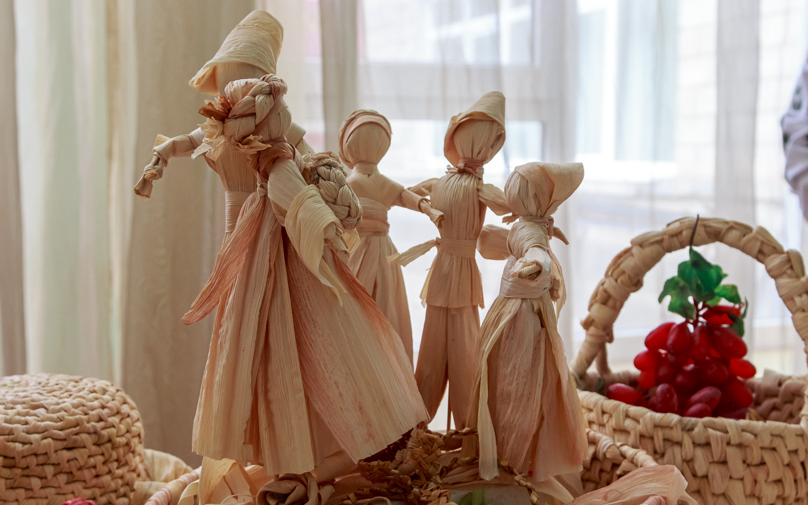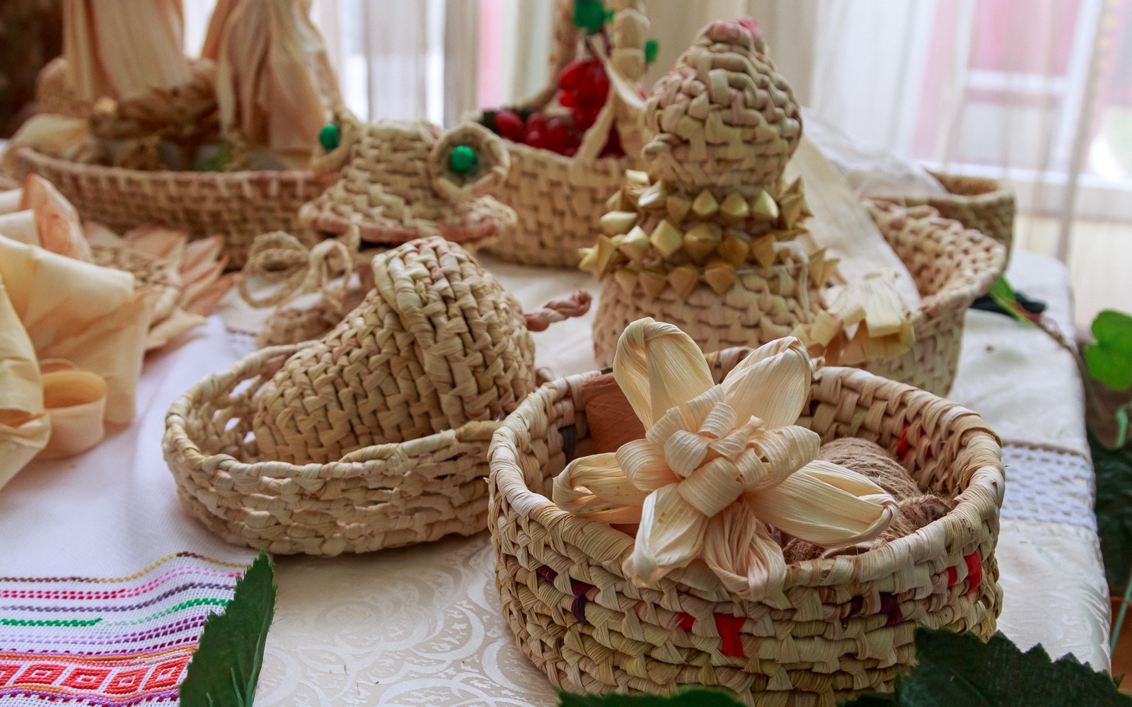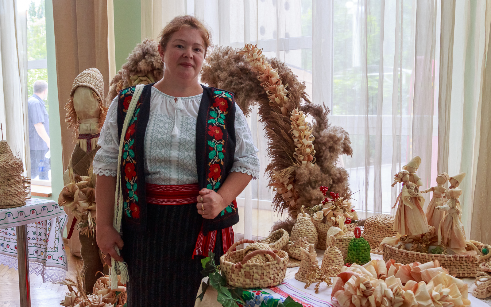Можно было увидеть изделия из кукурузных листьев – их создала руководитель коллектива декоративно-прикладного творчества «Чудесная мастерская» с. Коротное Екатерина Моцпан. «Мы представляем молдавскую культуру. Все фигуры выполнены вручную из кукурузных листьев, в этом и заключается наша самобытность», – рассказала мастерица.