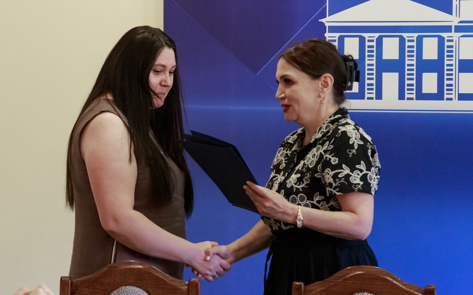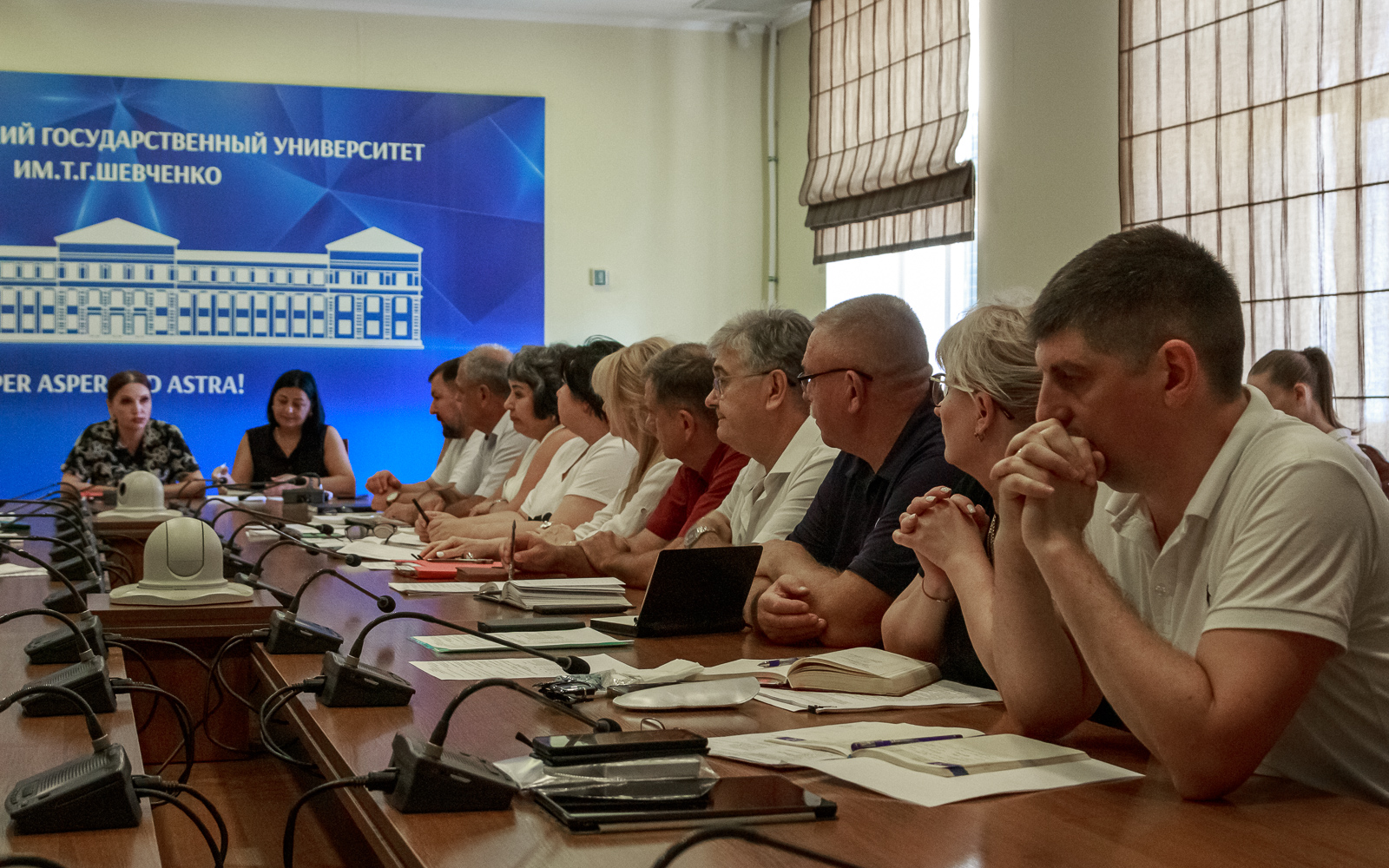 После церемонии награждения участники перешли к обсуждению вопросов повестки дня. Начальник Управления образовательной политики Л.К. Тануркова представила предварительные итоги приёмной кампании ПГУ на 2025–2026 учебный год. Затем Людмила Константиновна рассказала о планах по проведению встреч с первокурсниками.