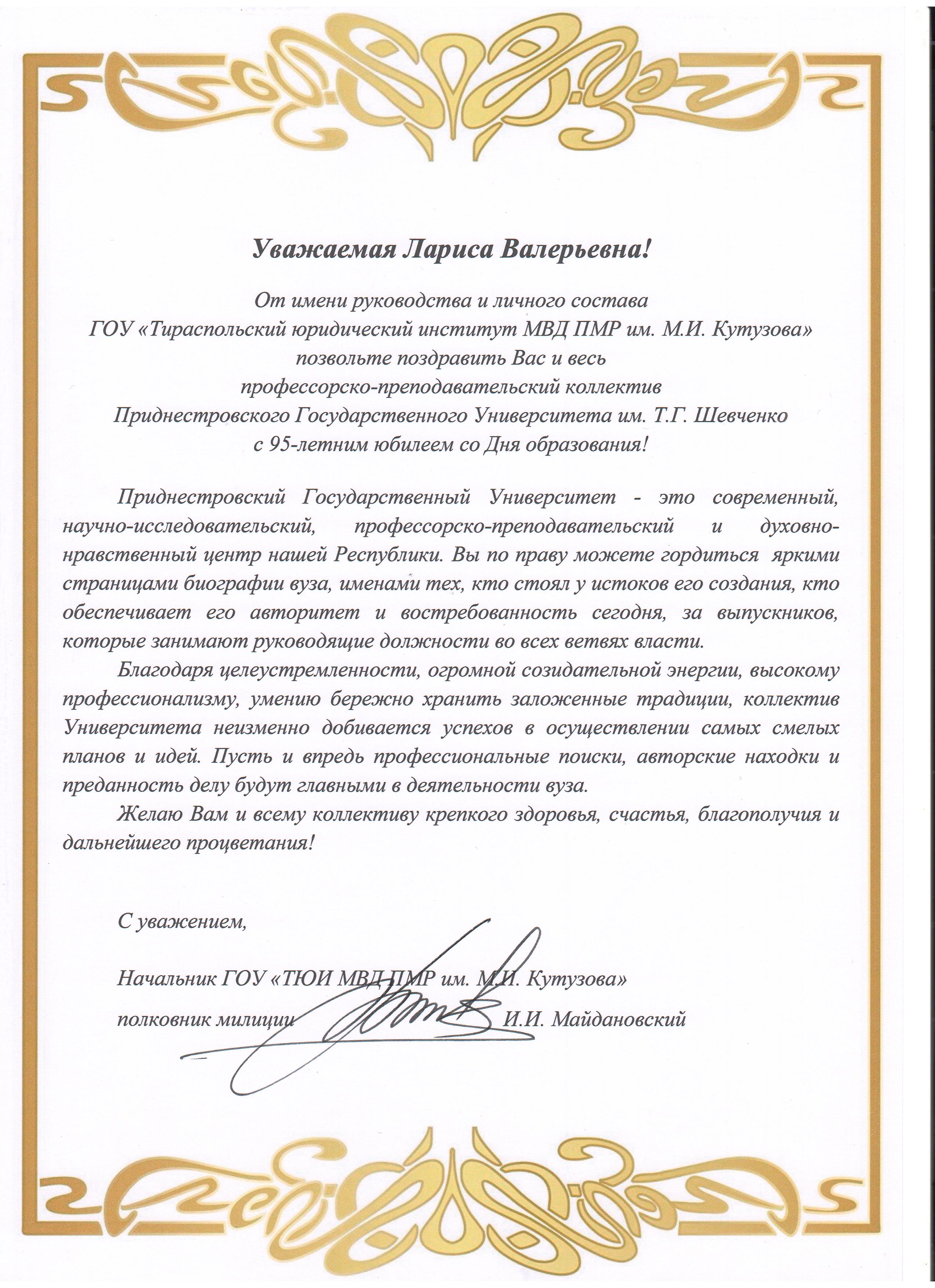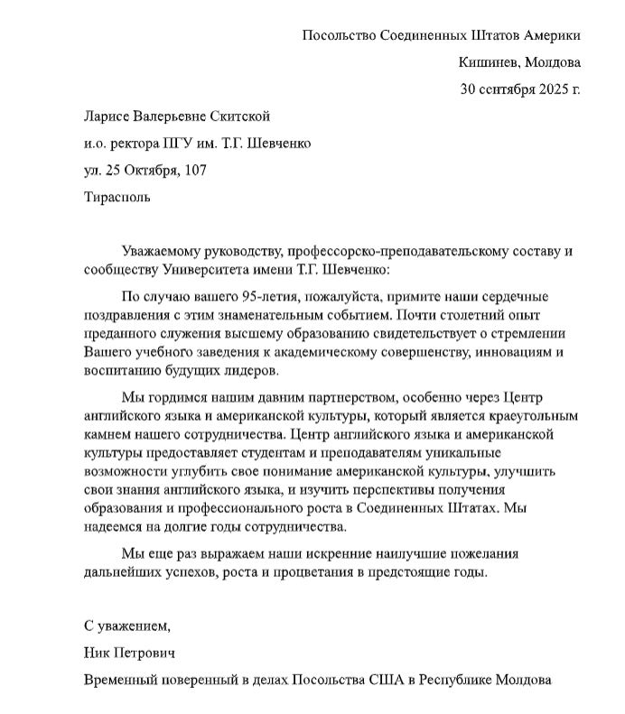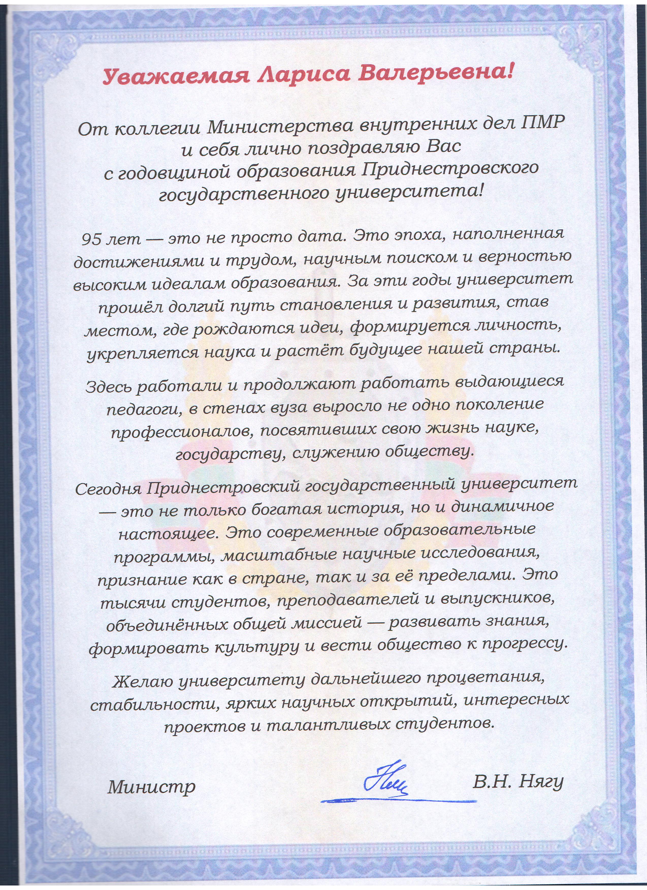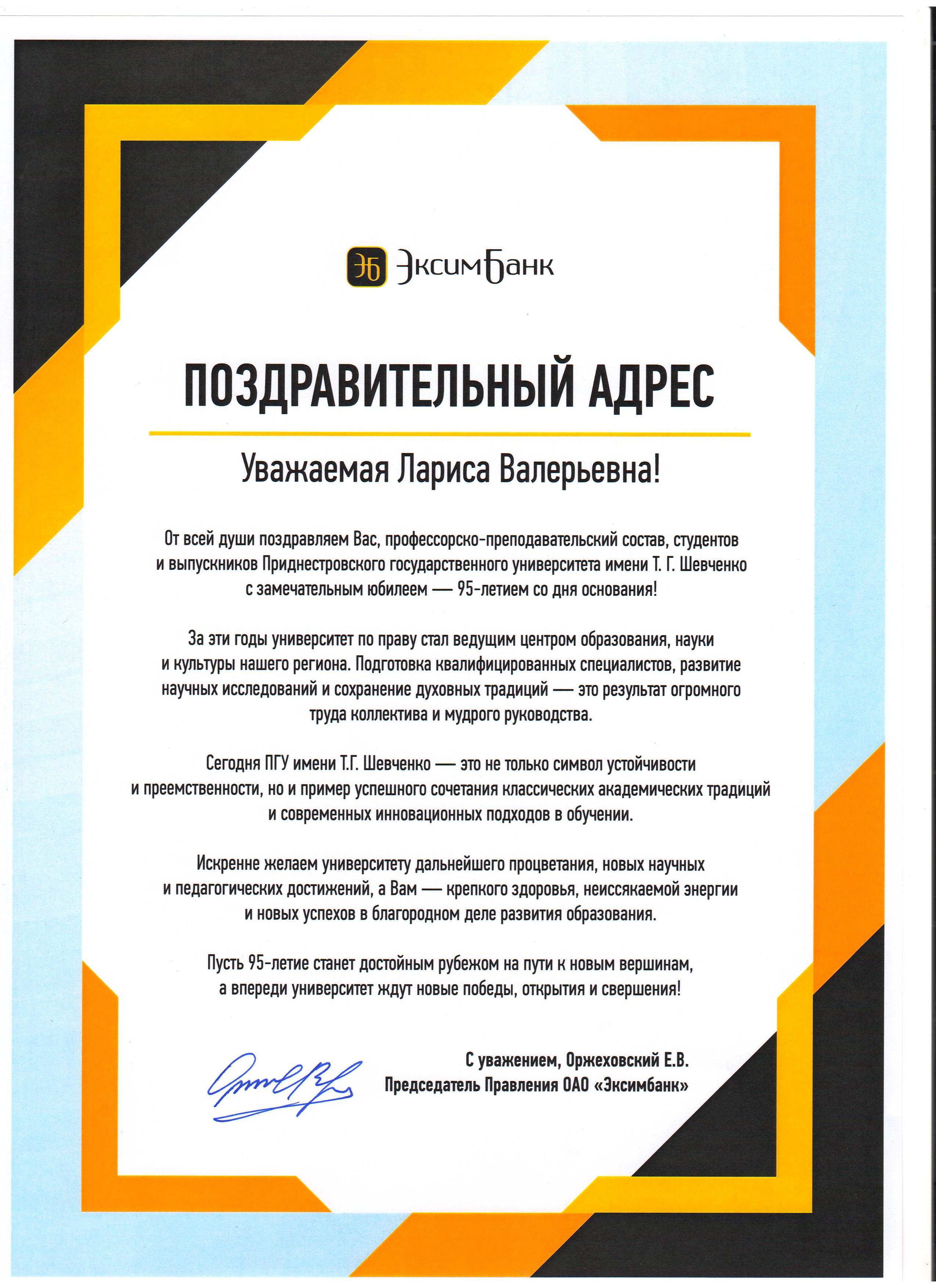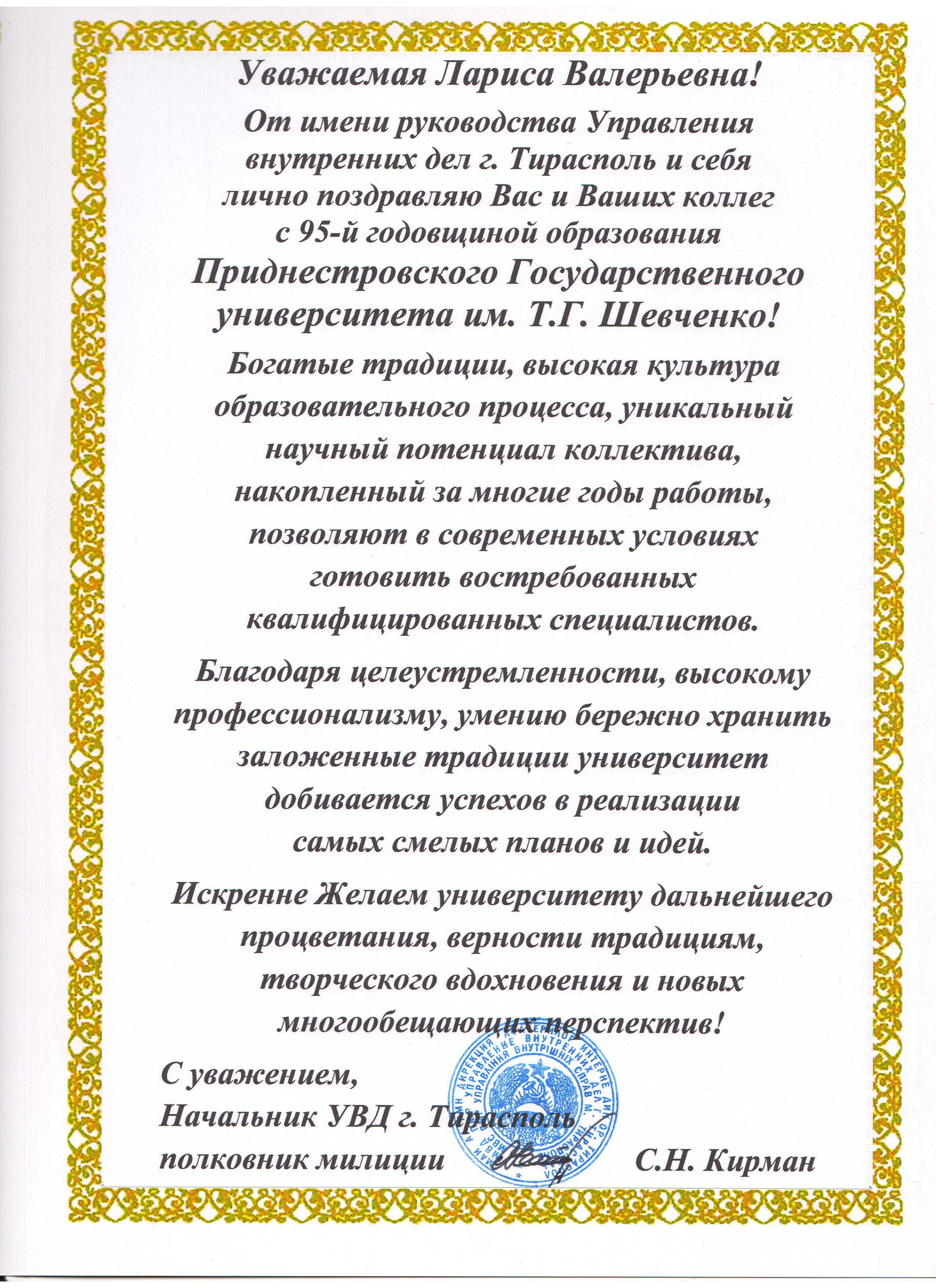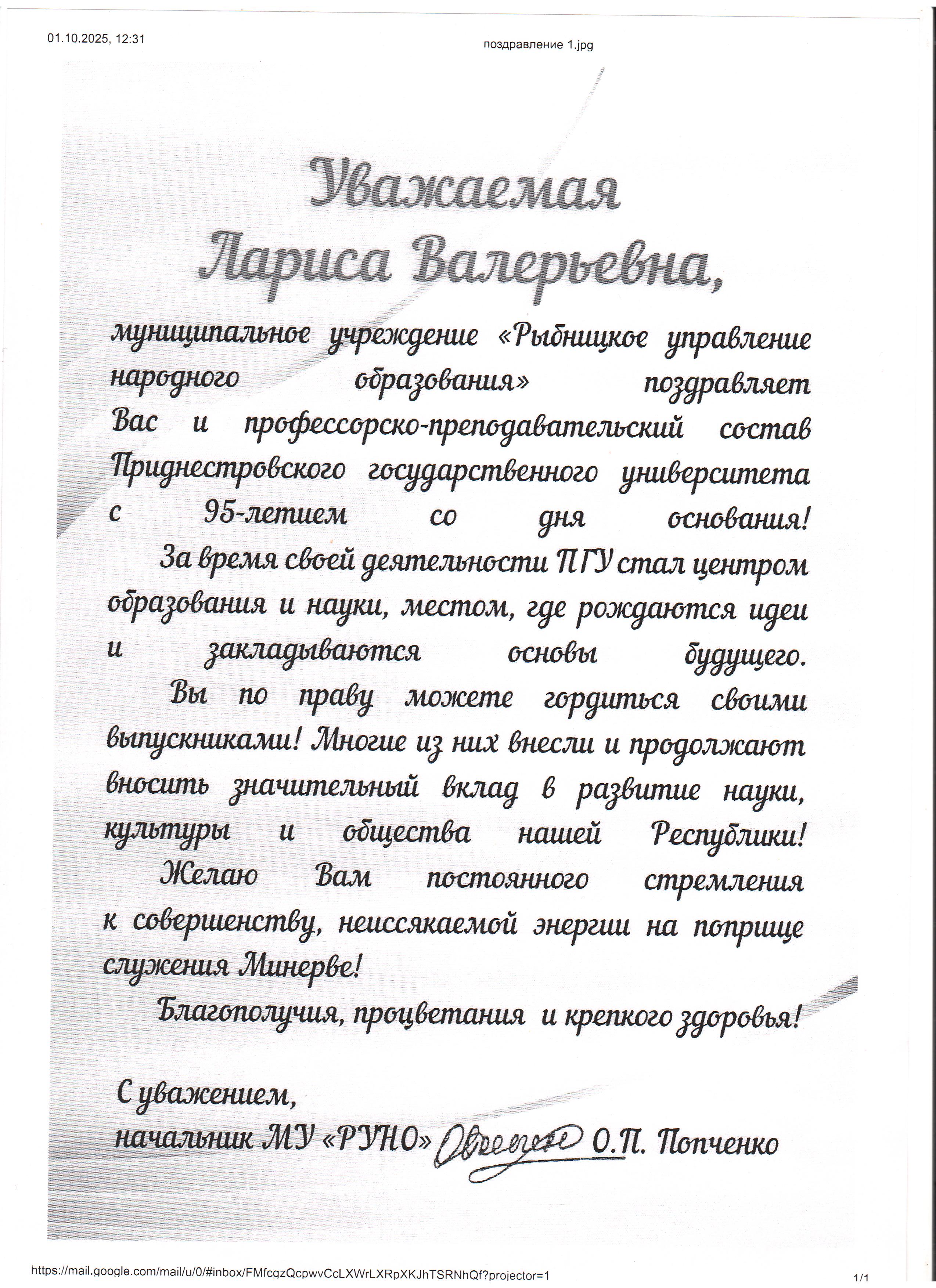 В честь 95-летия Приднестровского государственного университета имени Т. Г. Шевченко в адрес вуза поступило множество поздравлений. Своё уважение и признательность выразили государственные структуры, образовательные и научные организации, партнёрские учреждения ближнего и дальнего зарубежья.