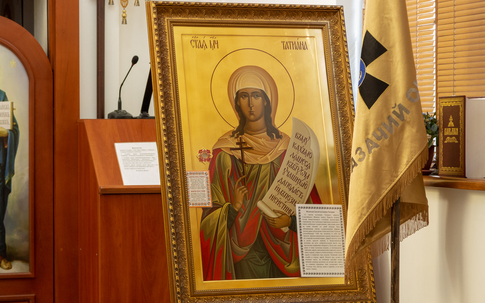 Отец Сергий рассказал, что храм называется студенческим не только потому, что находится на территории студгородка, а ещё и потому, что освящен в честь святой мученицы Татианы, которая в России с 1755 г. – даты основания Московского университета – считается покровительницей студентов. В церкви находится икона больших размеров с изображением самой Татианы и частицей её мощей. Хоть церковь и зовётся студенческой, её двери открыты для всех желающих.