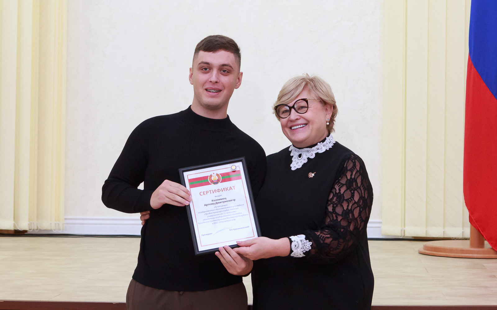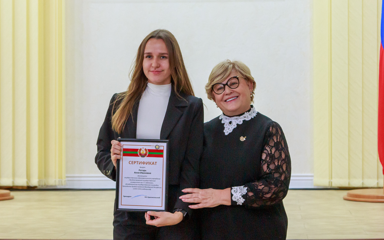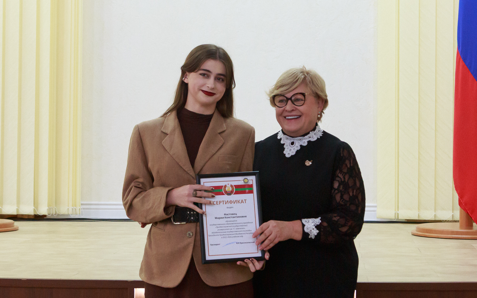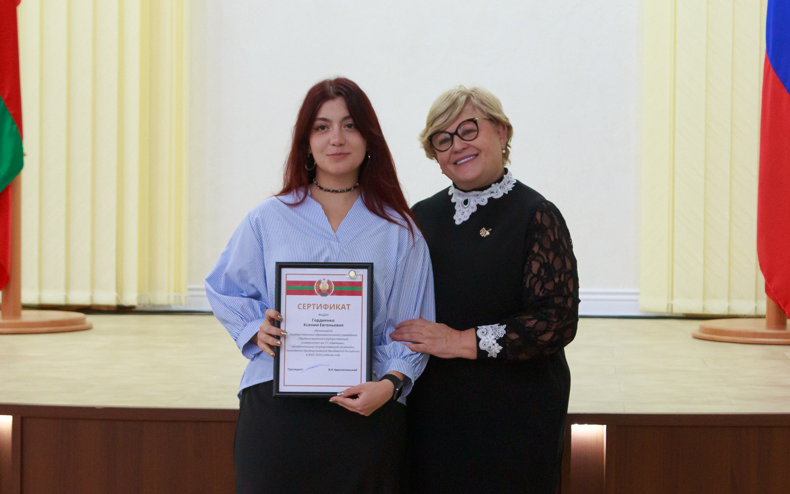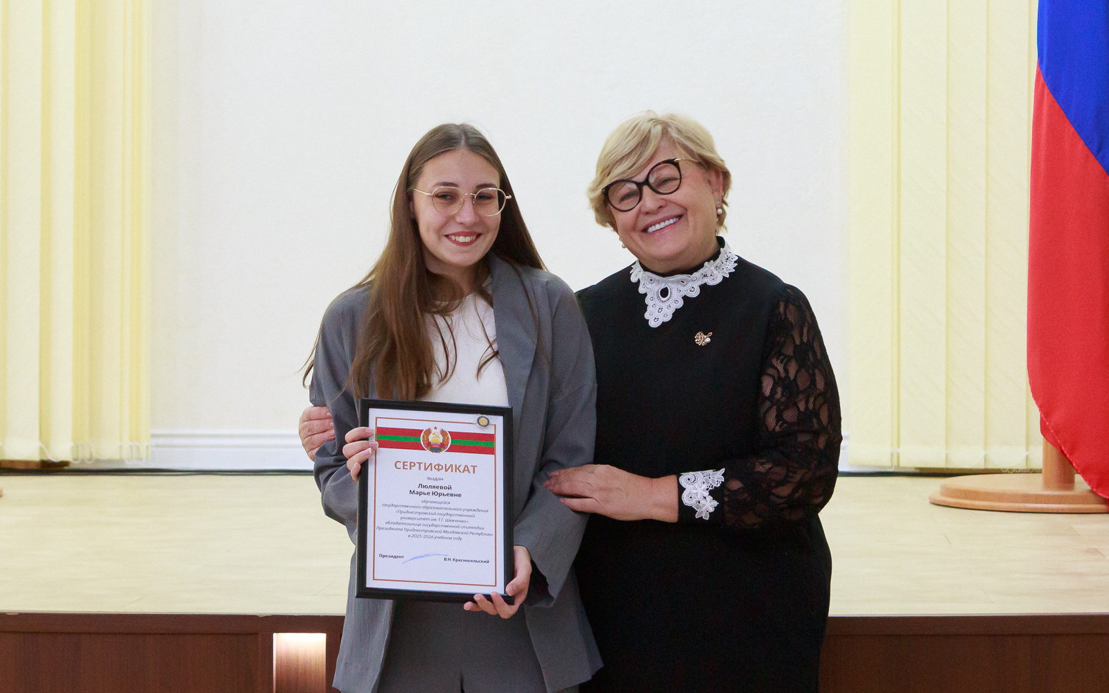 Торжественная церемония вручения сертификатов на президентскую стипендию 24 октября состоялось в малом зале Дворца Республики. Так с 2001 года отмечают за особые достижения лучших представителей приднестровской молодежи – отличников учебы, победителей спортивных соревнований и творческих конкурсов, активных участников общественной жизни. В нынешнем учебном году именных стипендий удостоился 101 человек, в том числе 25 студентов нашего университета. В течение 2025-2026 учебного года все стипендиаты будут получать ежемесячные выплаты в размере от 388 до 746 рублей (в зависимости от категории).