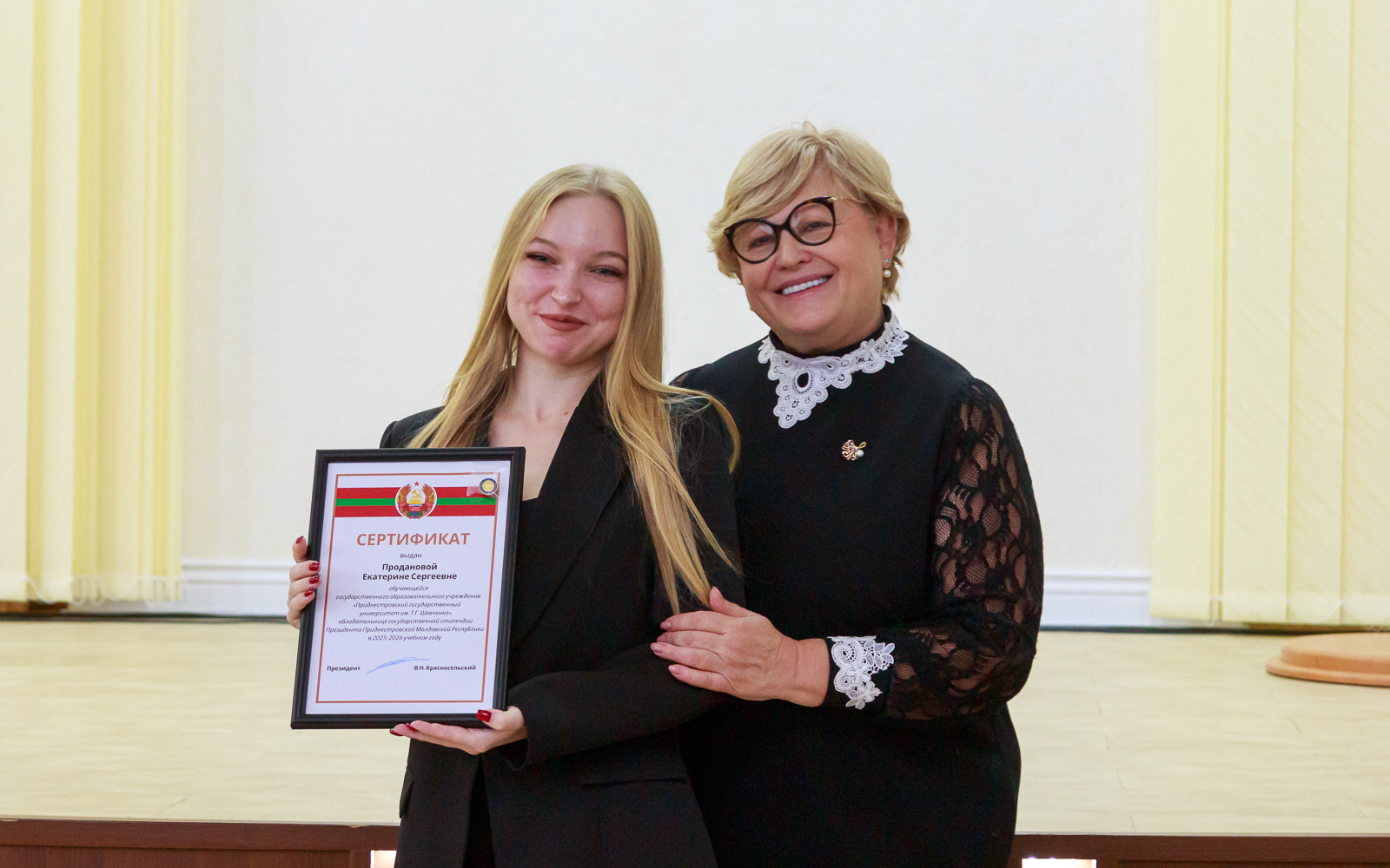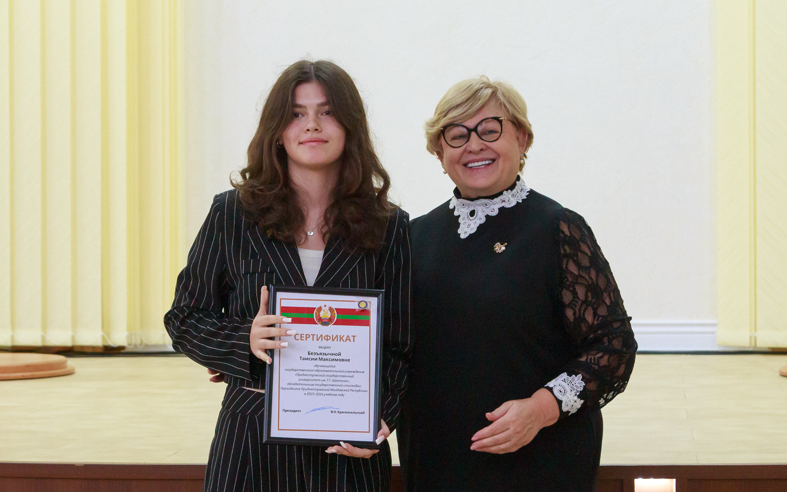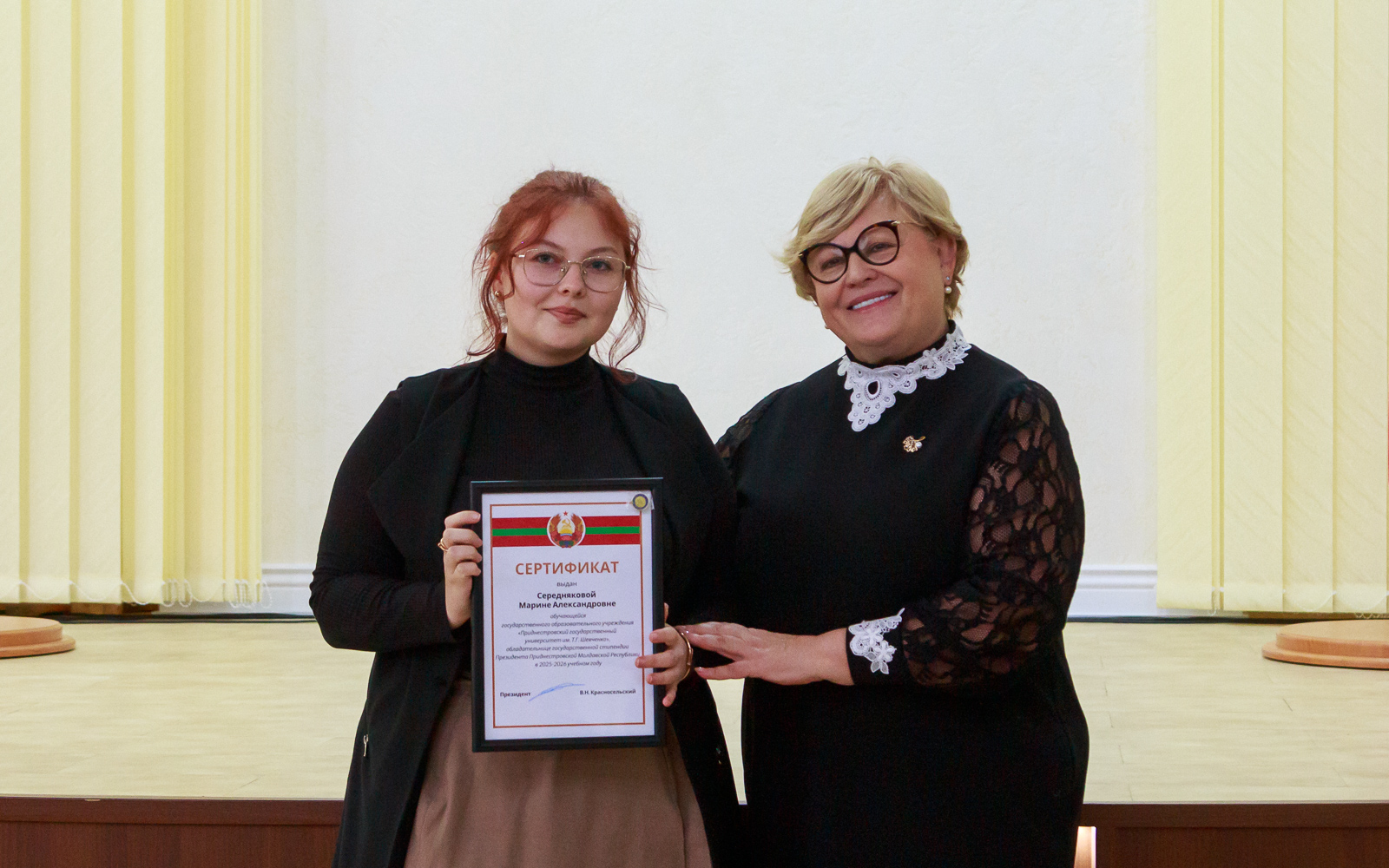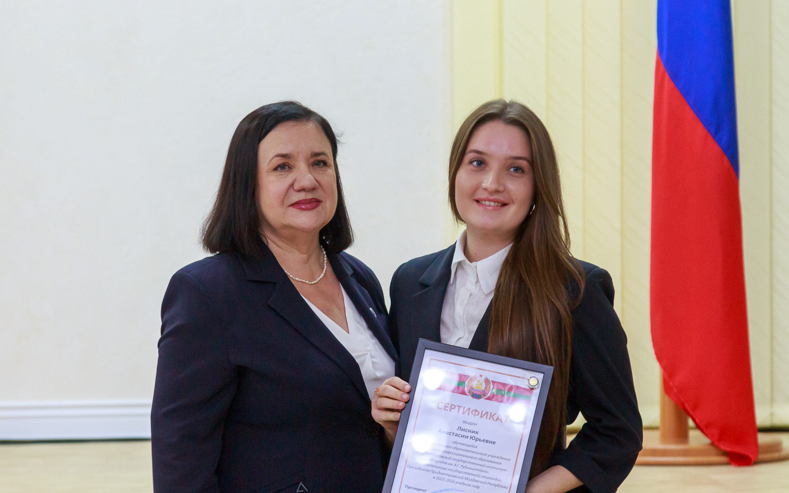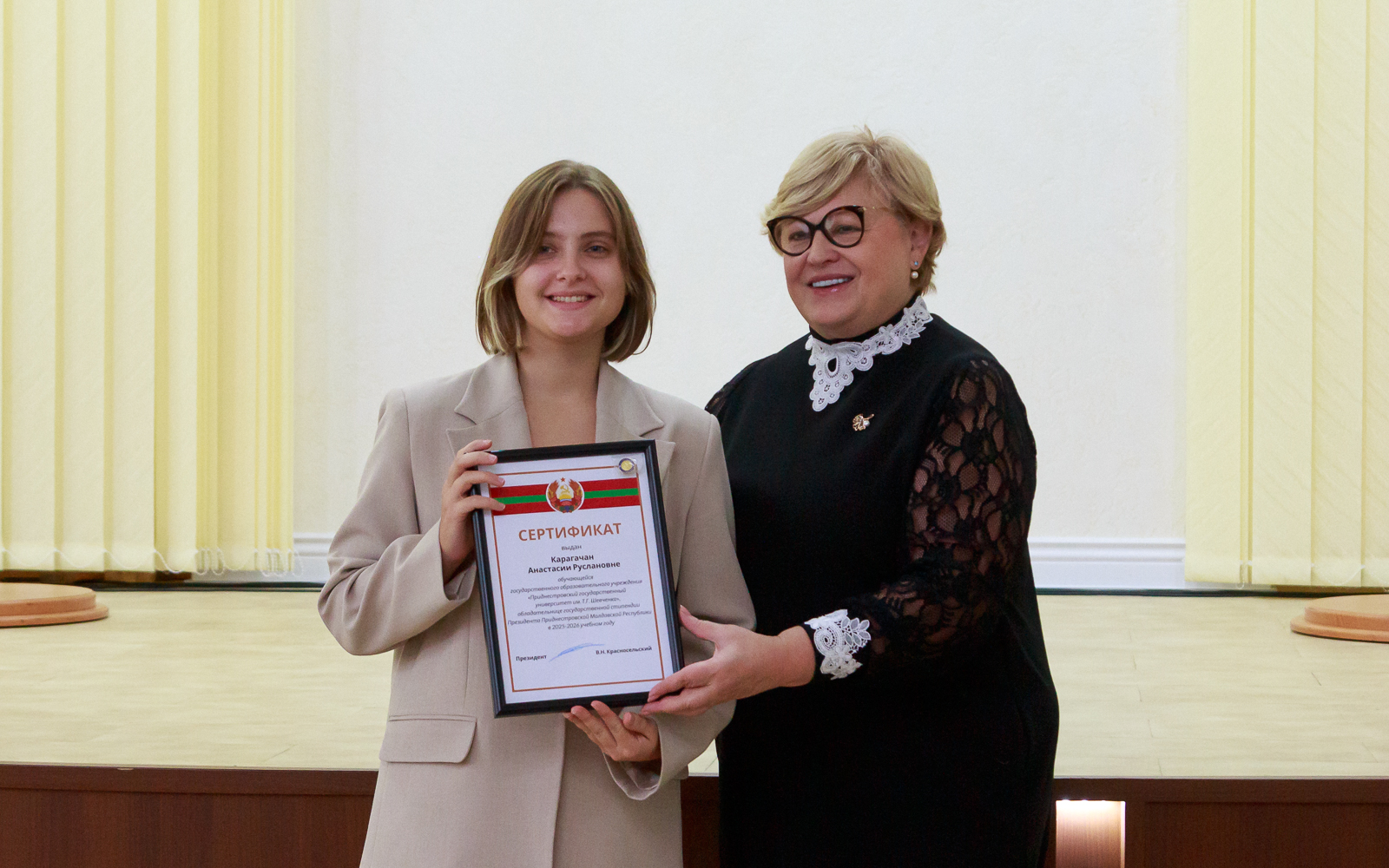 Торжественная церемония вручения сертификатов на президентскую стипендию 24 октября состоялось в малом зале Дворца Республики. Так с 2001 года отмечают за особые достижения лучших представителей приднестровской молодежи – отличников учебы, победителей спортивных соревнований и творческих конкурсов, активных участников общественной жизни. В нынешнем учебном году именных стипендий удостоился 101 человек, в том числе 25 студентов нашего университета. В течение 2025-2026 учебного года все стипендиаты будут получать ежемесячные выплаты в размере от 388 до 746 рублей (в зависимости от категории).