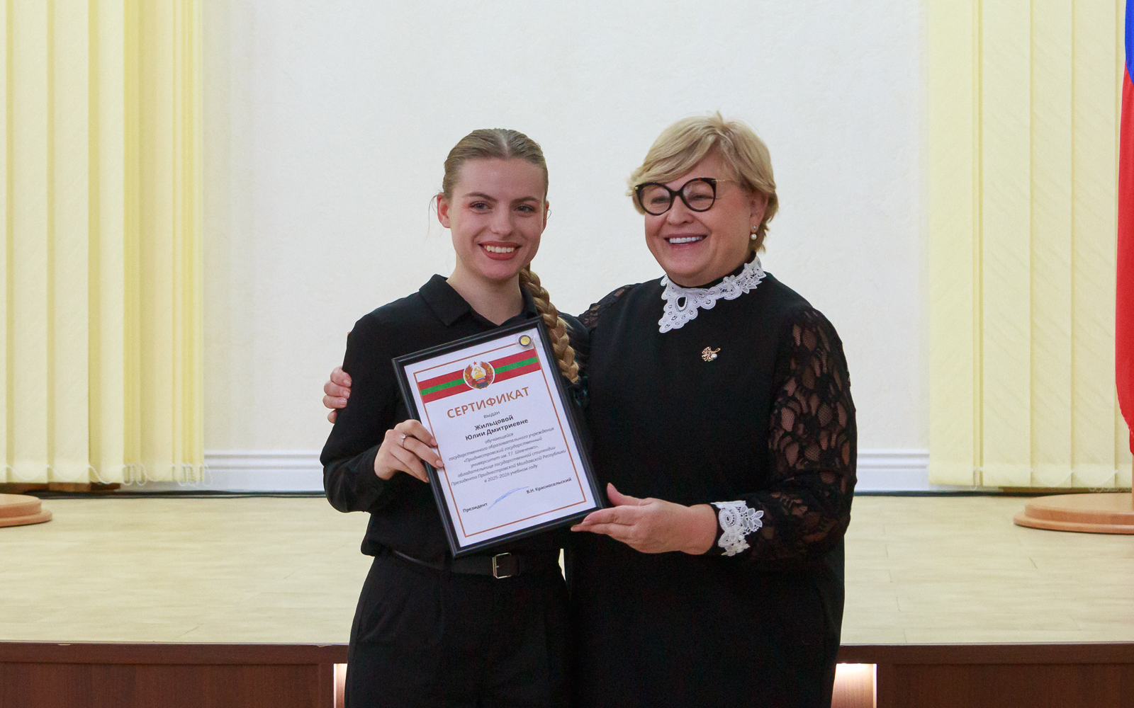 Министр просвещения ПМР С.Н. Иванишина поблагодарила педагогов и наставников, особо подчеркнув, что успех каждого стипендиата – это результат и их труда.