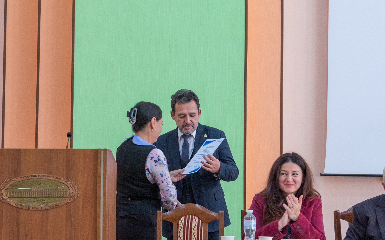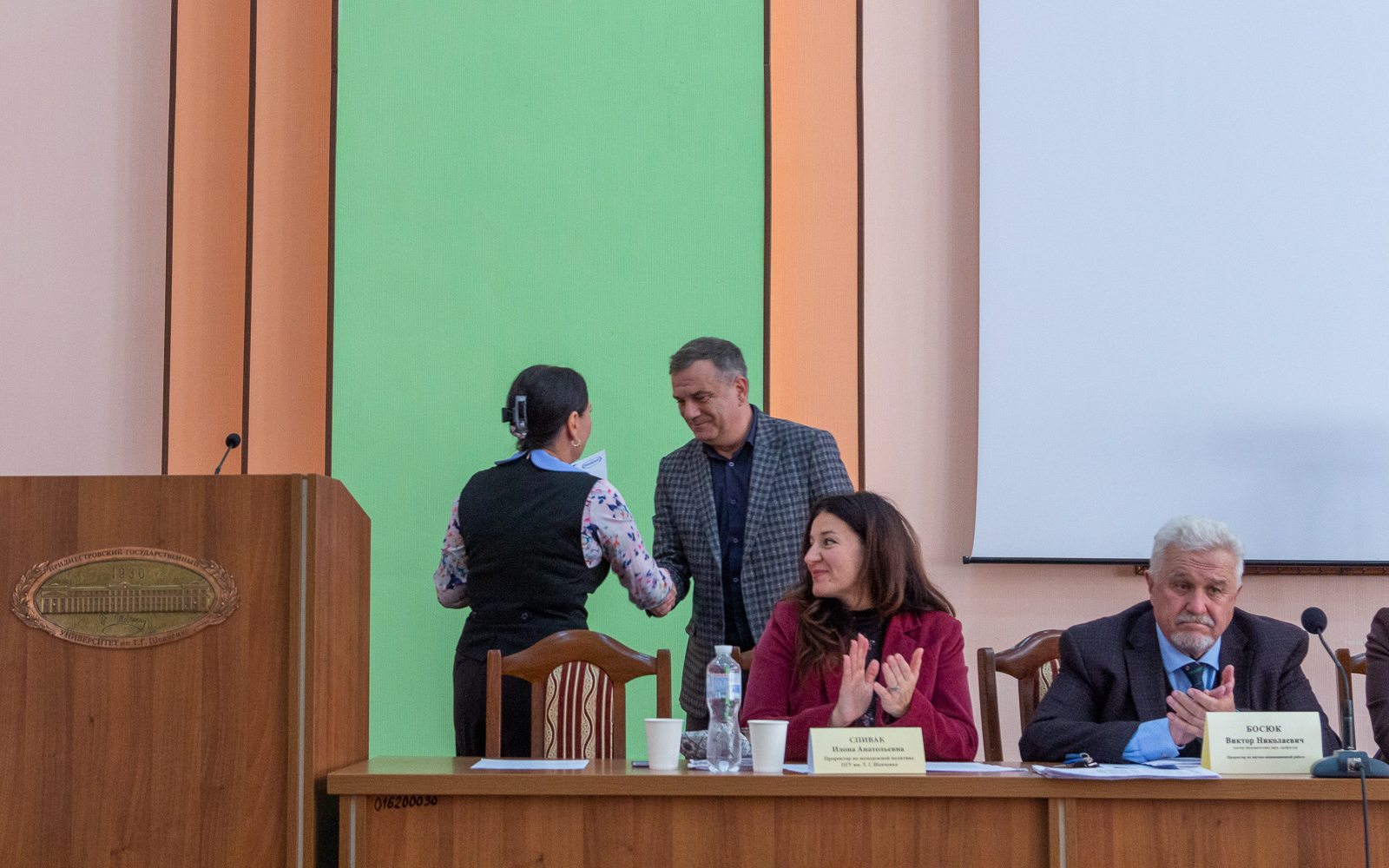 Перед началом работы еще двум сотрудникам ПГУ за многолетний добросовестный труд и в честь 95-летия ПГУ им. Т.Г. Шевченко были вручены государственные награды. Нагрудным знаком «За заслуги перед обществом» III степени отмечен профессор кафедры политологии и философии факультета государственного управления и социально-гуманитарных наук В.В. Граневский. Плотник эксплуатационно-технического отдела Управления хозяйственными службами Я.М. Шагал за высокий профессионализм удостоен ордена «Трудовая слава».
