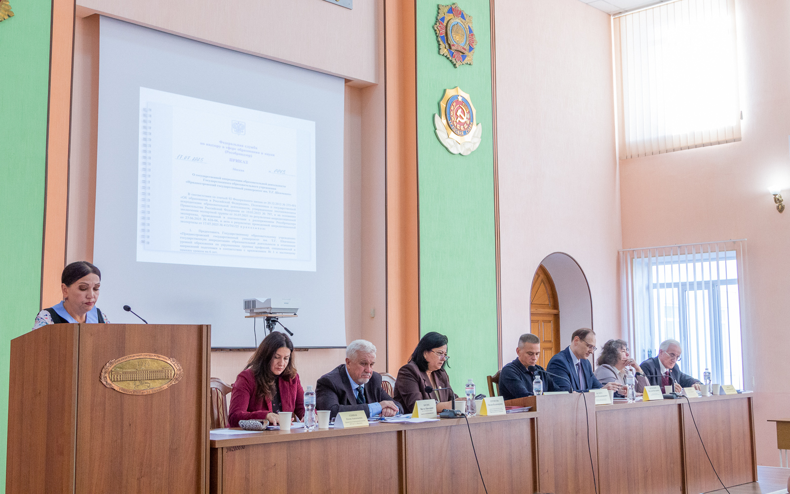 Согласно повестке дня с итогами деятельности ПГУ им. Т.Г. Шевченко за 2024-2025 учебный год выступила и.о. ректора доцент Л.В. Скитская. Лариса Валерьевна сообщила, что университет прошел государственную аккредитацию Рособрнадзором по 56 укрупненным группам направлений и специальностей. По итогам аккредитации подтверждено право выдачи выпускникам дипломов Российской Федерации с размещением сведений о выданных документах в федеральном реестре. Расширен доступ к учебно-методическим материалам – заключен договор с Электронной библиотечной системой «Лань». Для проверки студенческих и диссертационных работ используется лицензионный комплекс «Антиплагиат», полученный при поддержке Президента В.Н. Краносельского. Университет продолжает работу в профильных информационных системах, проводит федеральный интернет-экзамен для выпускников бакалавриата.