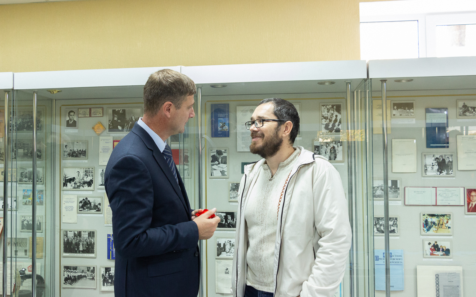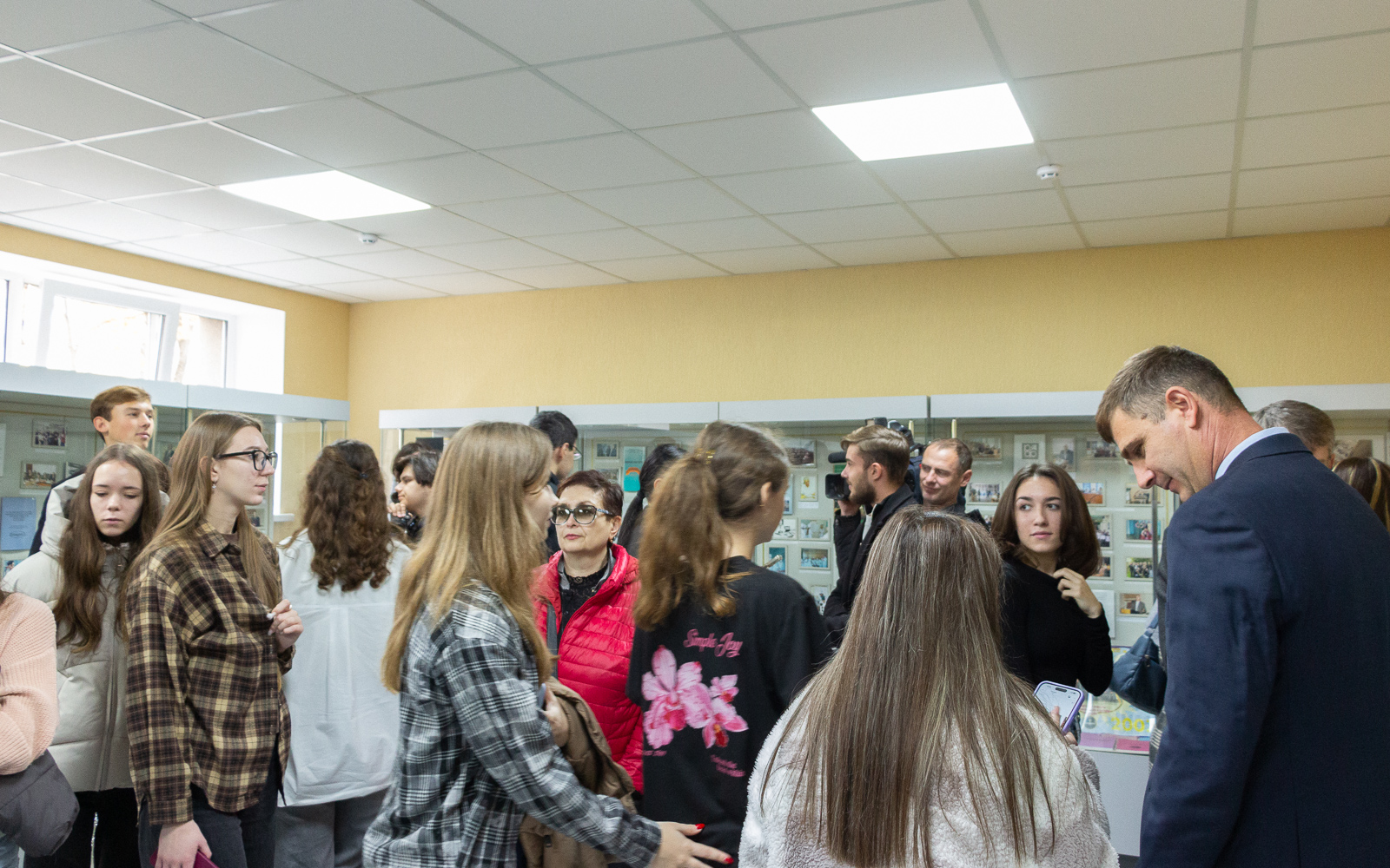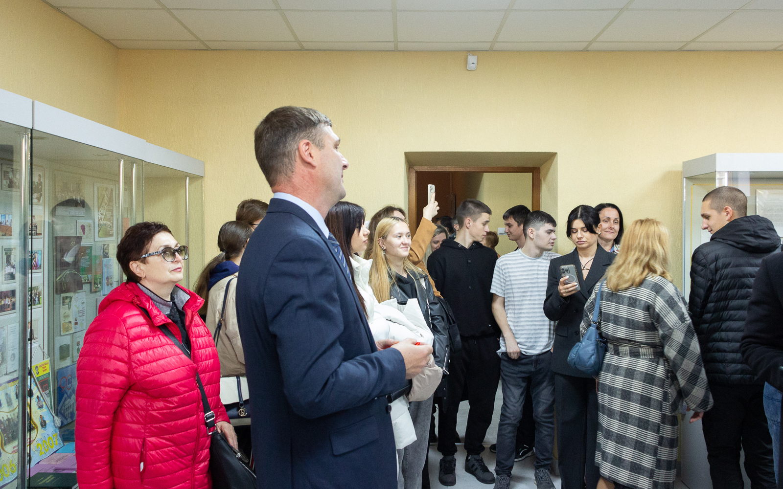 После того как и.о. ректора Л.В. Скитская и директор музея А.В. Гуцул перерезали красную ленточку, присутствующие прошли в обновленный зал, где смогли осмотреть экспонаты музея.