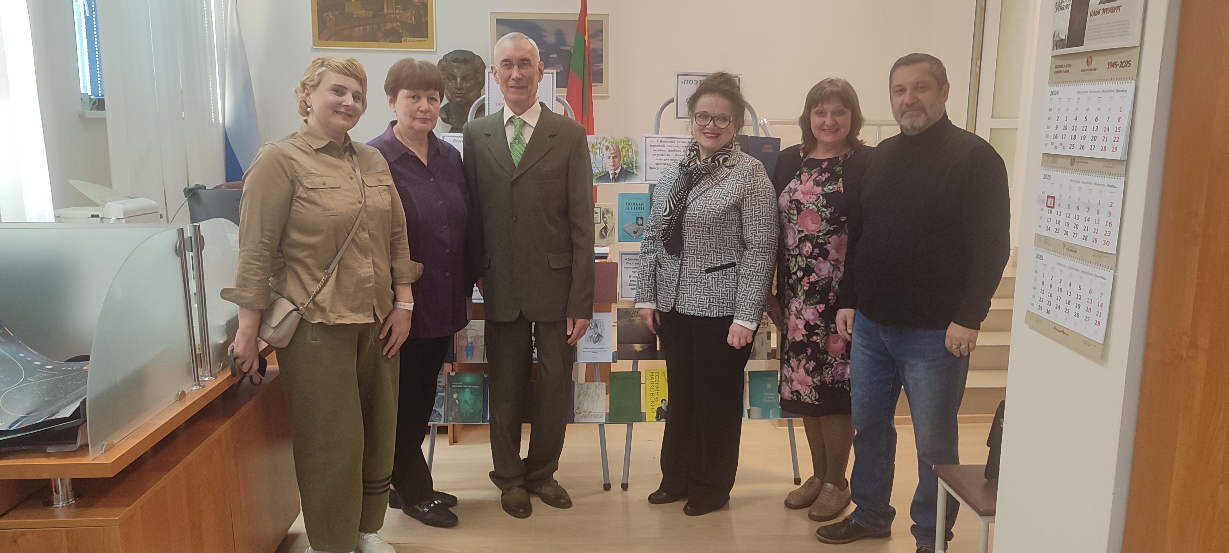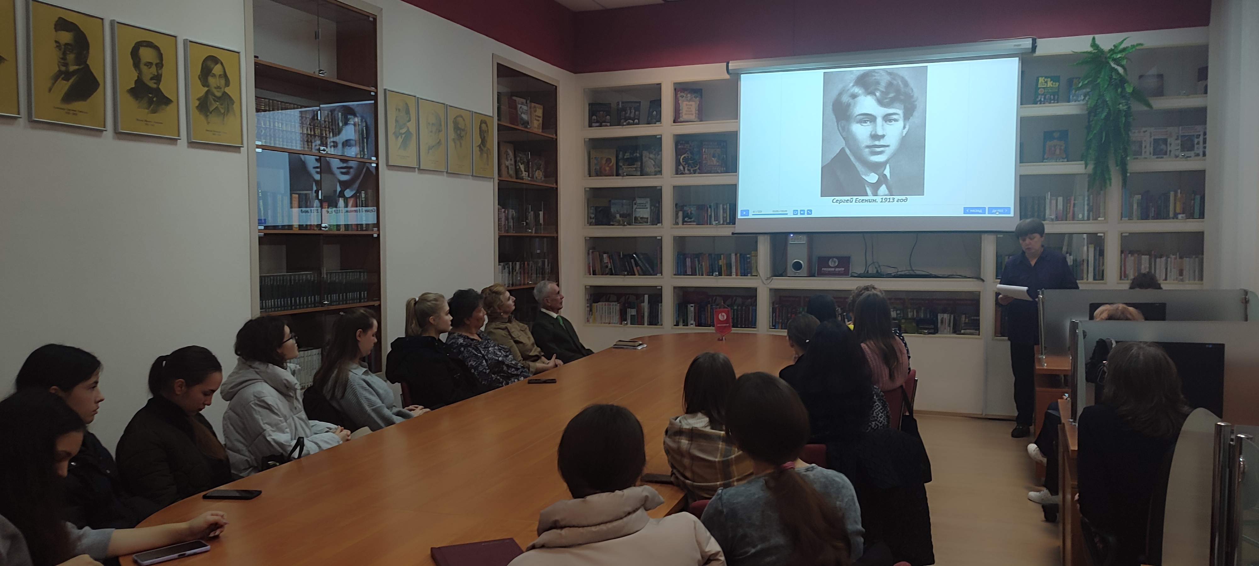 В рамках Недели открытых дверей в Русском центре ПГУ 3 ноября года было проведено заседание Литературной гостиной под названием «Всю душу выплещу в слова», посвященное 130-летию со дня рождения С.А. Есенина. Помимо студентов филологического факультета и преподавателей кафедры русской филологии участие приняли учащиеся Бендерского теоретического лицея. Выставку книг о жизни и творчестве певца «страны берёзового ситца» подготовили сотрудники научной библиотеки ПГУ.