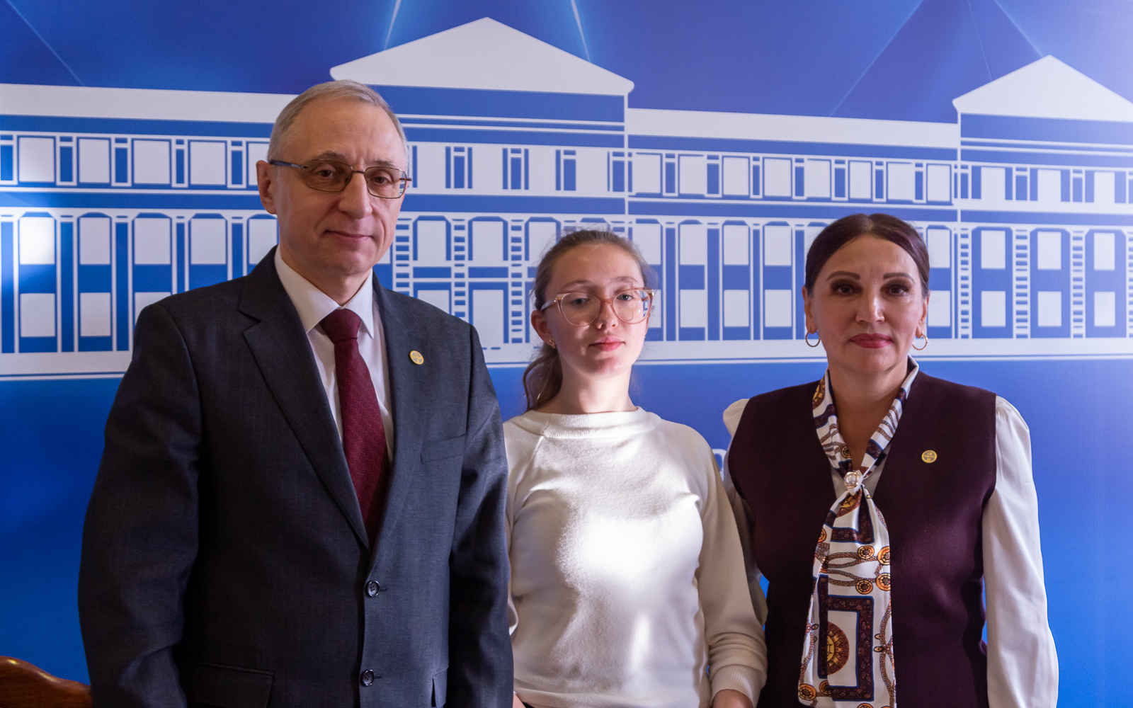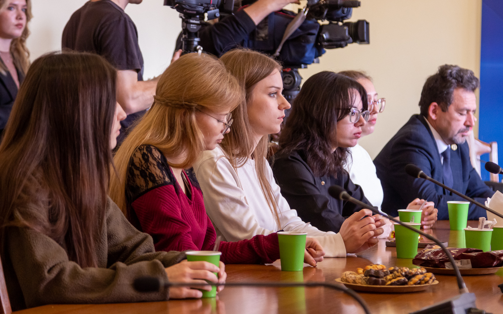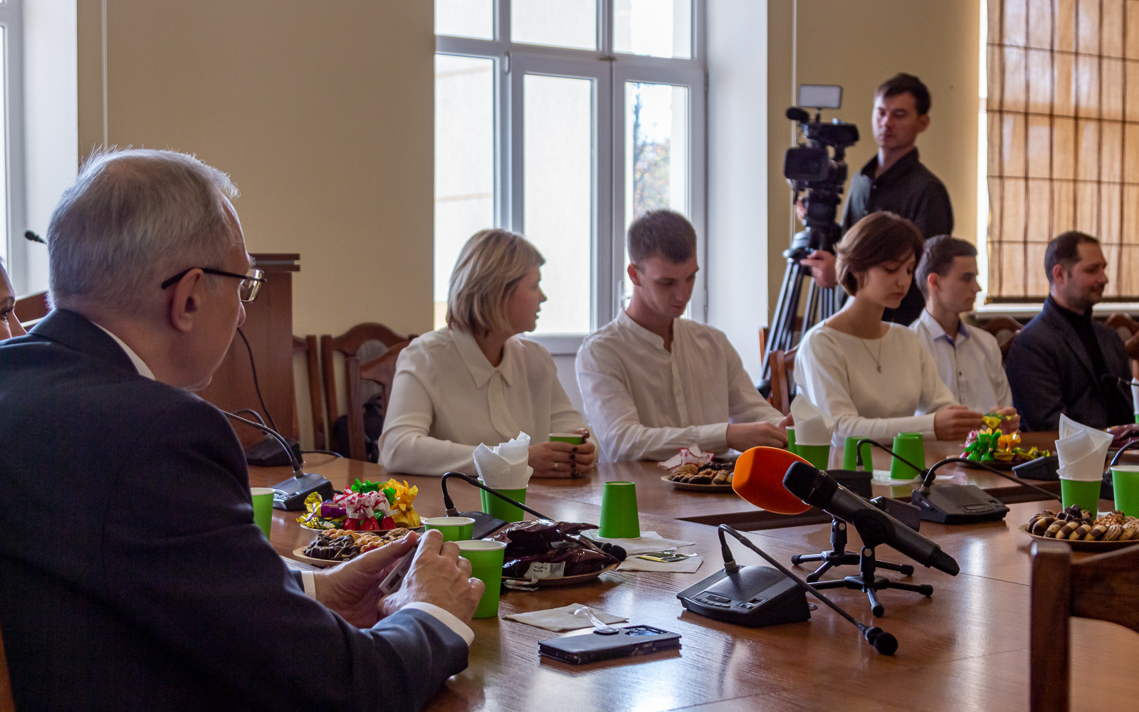 И.о. ректора доцент Л.В. Скитская сказала, что встреча организована не только для вручения победителям заслуженных наград, но и для общения с авторами и руководителями проектов, чтобы узнать, каким видит креативная молодежь дальнейшее развитие нашей республики. Лариса Валерьевна отметила, что в нашем университете такого рода конкурс, в отличие от российских вузов, проводится впервые и приурочен, конечно же, к 95-летнему юбилею ПГУ.