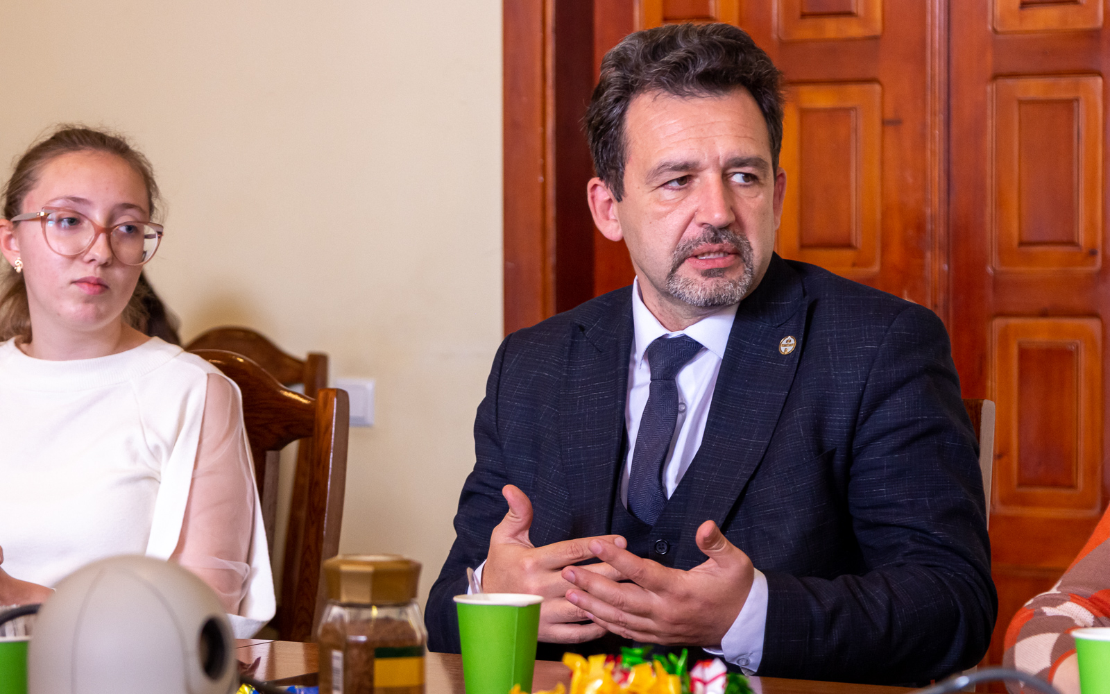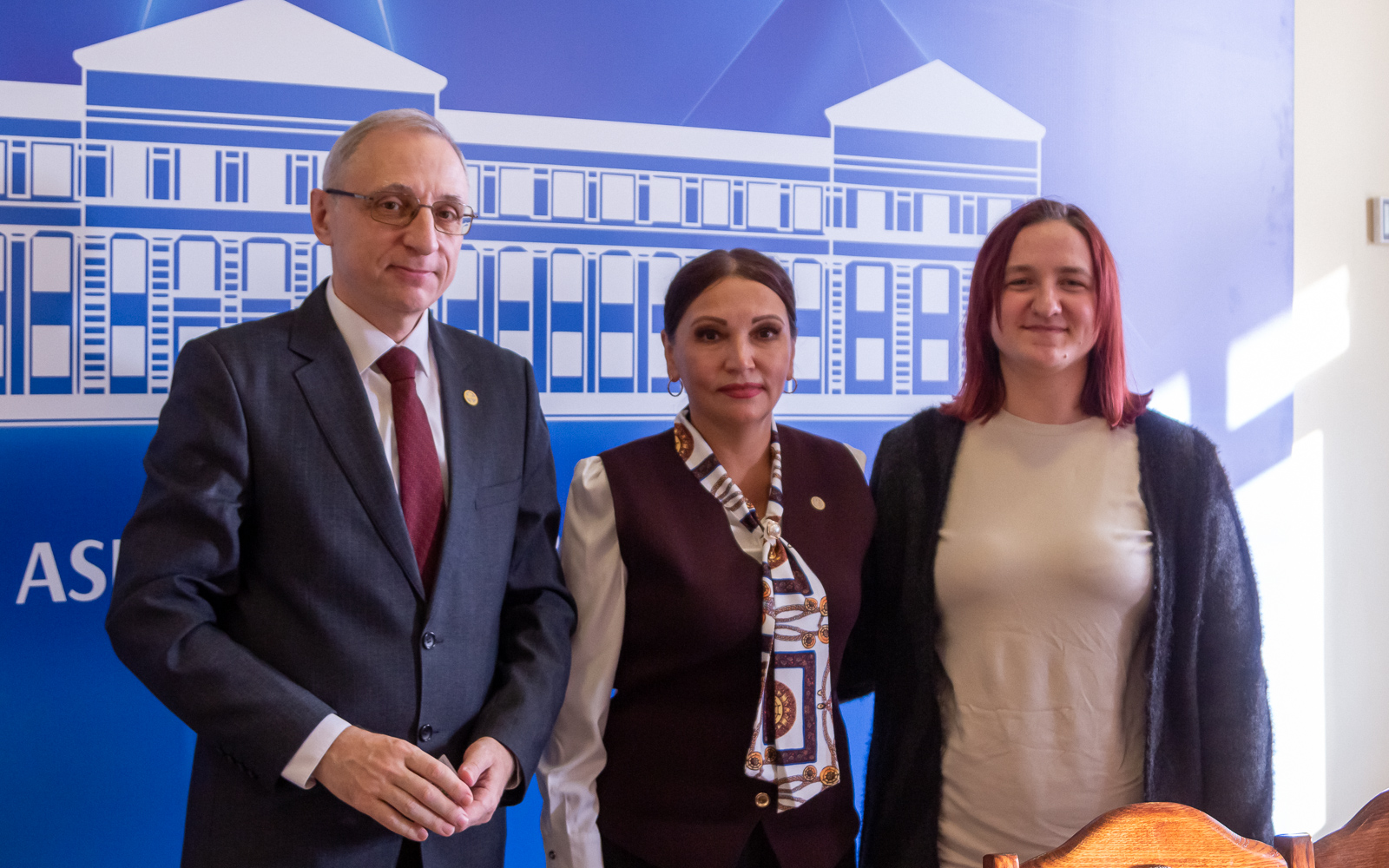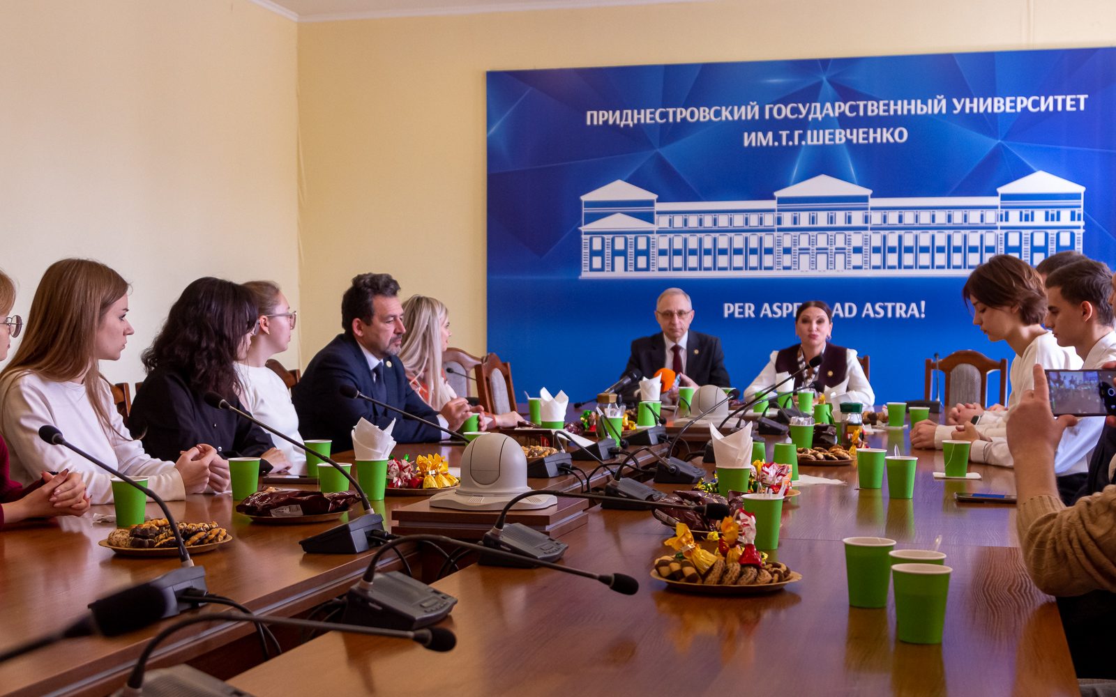 И.о. ректора доцент Л.В. Скитская сказала, что встреча организована не только для вручения победителям заслуженных наград, но и для общения с авторами и руководителями проектов, чтобы узнать, каким видит креативная молодежь дальнейшее развитие нашей республики. Лариса Валерьевна отметила, что в нашем университете такого рода конкурс, в отличие от российских вузов, проводится впервые и приурочен, конечно же, к 95-летнему юбилею ПГУ.
