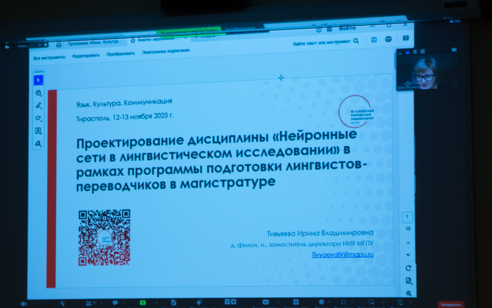 На проектировании дисциплины «Нейронные сети в лингвистическом исследовании» в рамках программы подготовки лингвистов-переводчиков в магистратуре сконцентрировала внимание заместитель директора Института иностранных языков Московского городского педагогического университета доктор филологических наук, профессор кафедры языкознания и переводоведения И.В. Тивяева, отметив важность сочетания гуманитарного подхода с современными цифровыми инструментами.