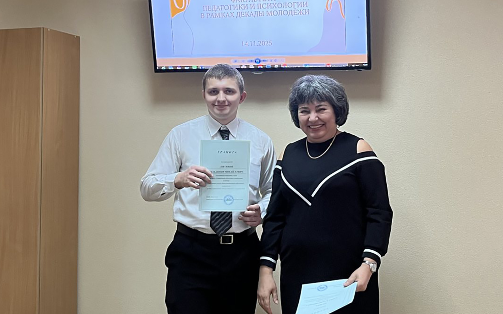 Заместитель декана по воспитательной работе М.Г. Вахницкая подвела промежуточные итоги Декады молодежи и студентов–2025, отметила мероприятия республиканского и университетского уровней, в которых участвовали студенты факультета педагогики и психологии.