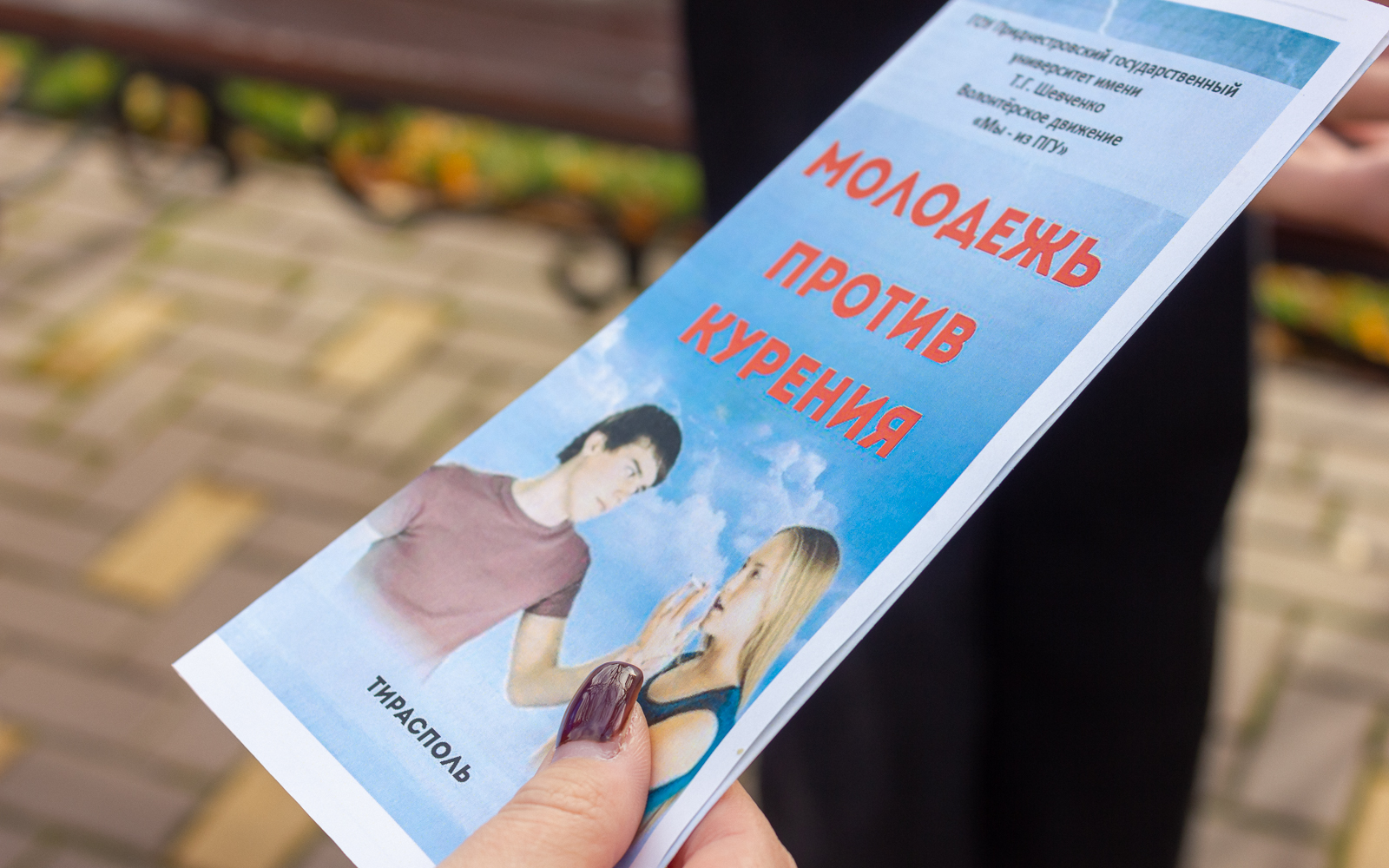 Методист УВРиСП В.Ю. Кучерявый провёл краткий инструктаж, после которого волонтёры разошлись по заранее определённым точкам. Акция охватила сразу несколько площадок – параллельно работа шла у Медицинского института и около Бендерского политехнического. Волонтёры – представители разных факультетов Приднестровского университета обращались к студентам, преподавателям и просто прохожим, рассказывая им о вреде курения и раздавая яркие флаеры, на которых простым и понятным языком говорится том, что происходит с организмом после каждой выкуренной сигареты. Курящим ребята делали интересное предложение: обмен сигареты на конфеты.