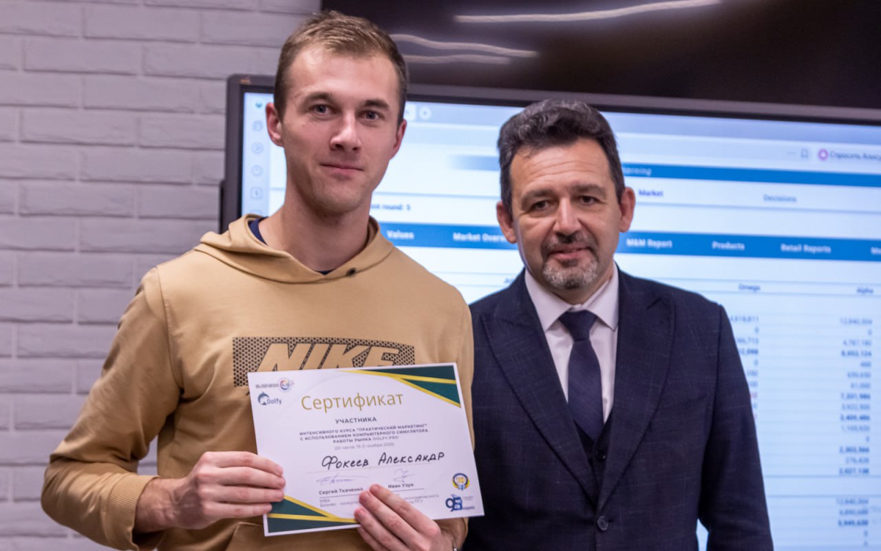 В завершение бизнес-практикума всем членам команд вручили сертификаты учасника курса. Победителям – каждому из пяти человек в команде «Дельта» – дополнительно были вручены подарочные сертификаты.