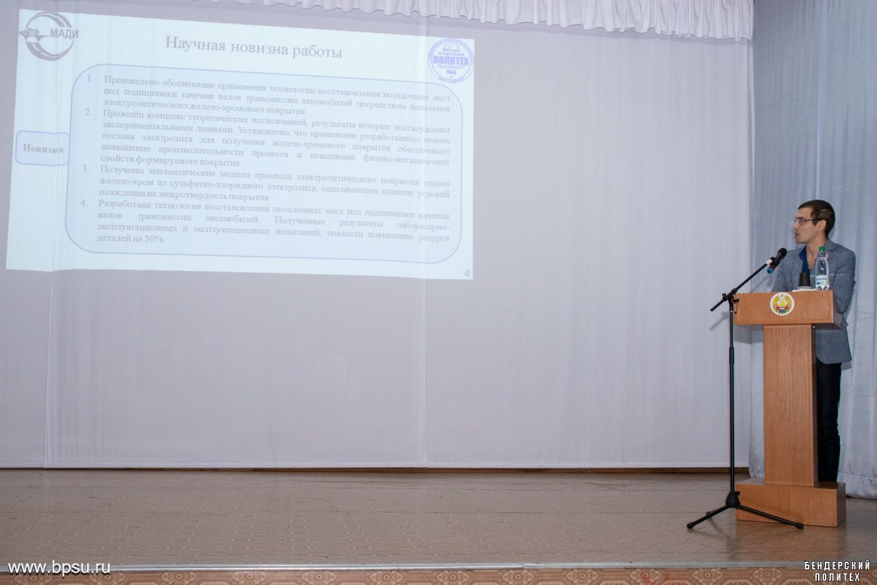 «Исследование и разработка технологий восстановления деталей трансмиссии автомобилей электролитическим сплавом FE-CR в условиях Приднестровского региона» зав. кафедрой «Транспортно-технологические машины и комплексы», старшего преподавателя БПИ Антона Сергеевича Януты;