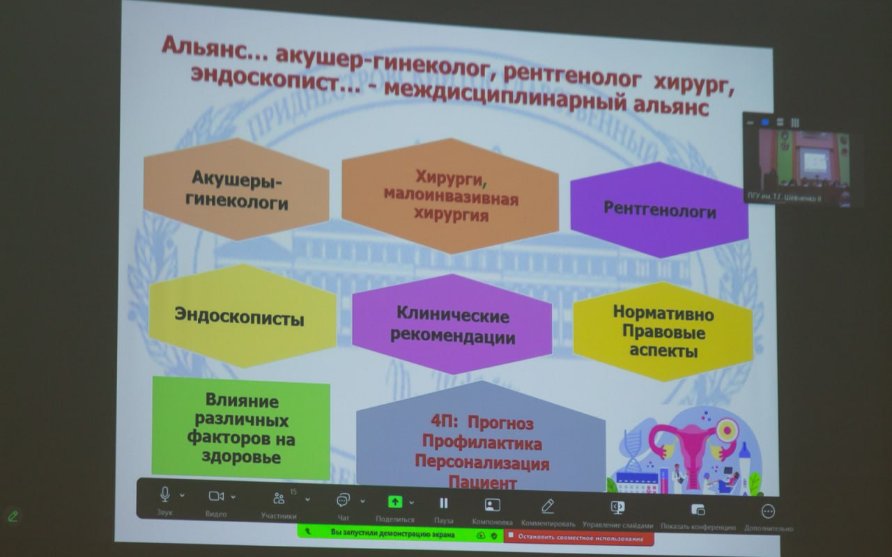 Тему женского здоровья продолжила врач акушер-гинеколог высшей категории, заведующая Центром репродуктивного здоровья и планирования семьи Республиканского центра матери и ребёнка, канд. мед. наук, доцент кафедры педиатрии, акушерства и гинекологии Медицинского института им. Н.В. Склифосовского О.С. Чебан. «Главное в медицине сегодня – это всё-таки многофункциональность, понять специалиста, междисциплинарное взаимодействие и персонализированная медицина», – отметила Оксана Сергеевна, остановившись на новой модели медицины, базирующейся на четырёх «П»: прогнозирование, профилактика, персонализация и активное участие пациента.