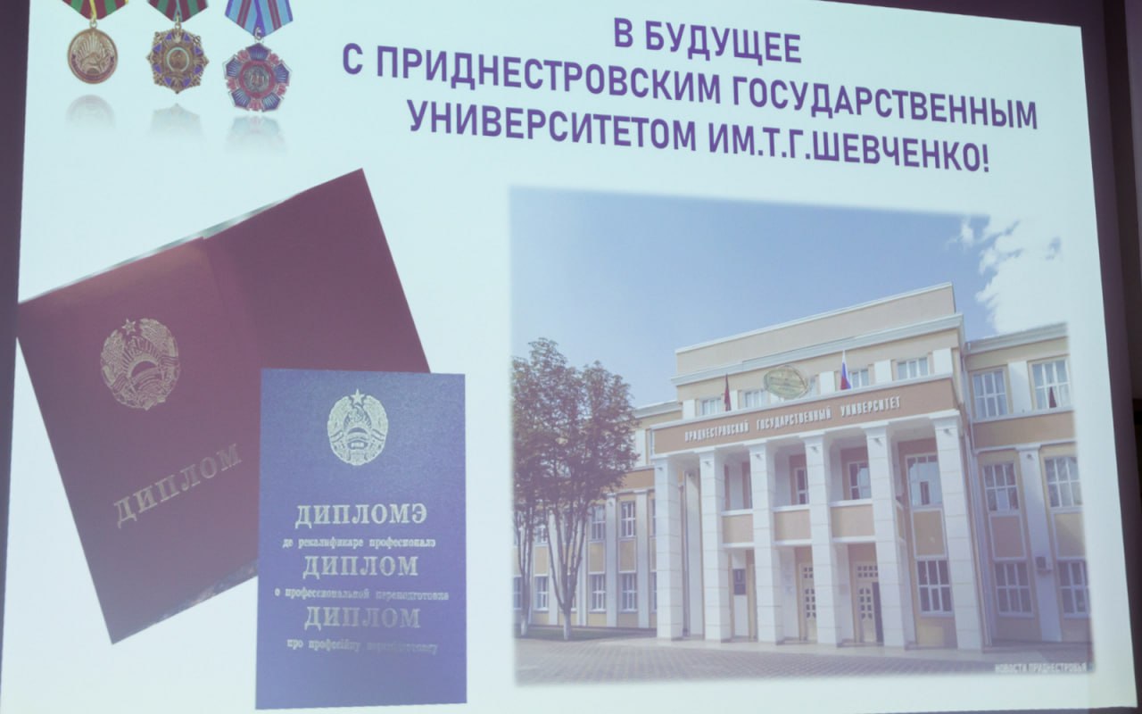 Интерактивная профориентационная лекция «Будущее с Приднестровским государственным университетом им. Т.Г. Шевченко» 3 декабря состоялась в актовом зале Дворца детско-юношеского творчества в Тирасполе.