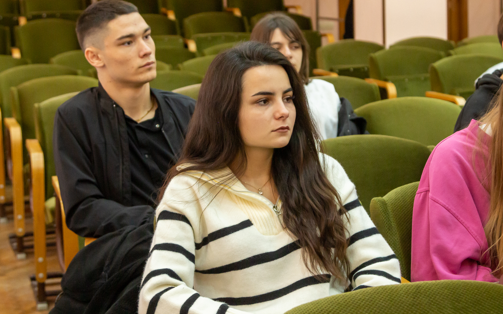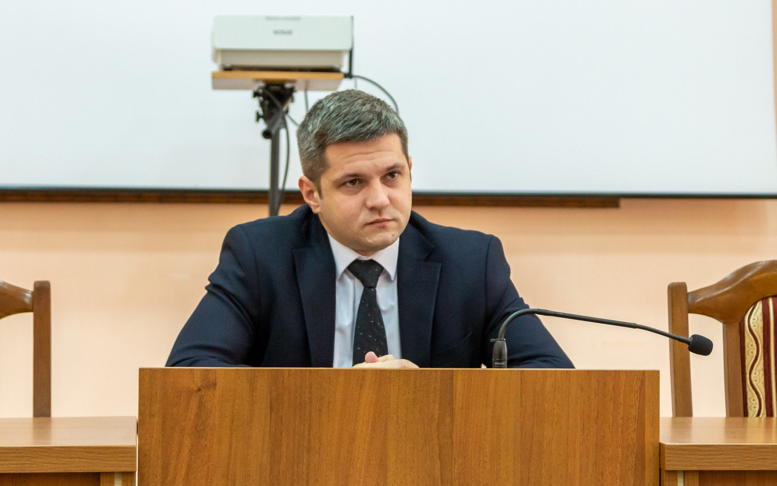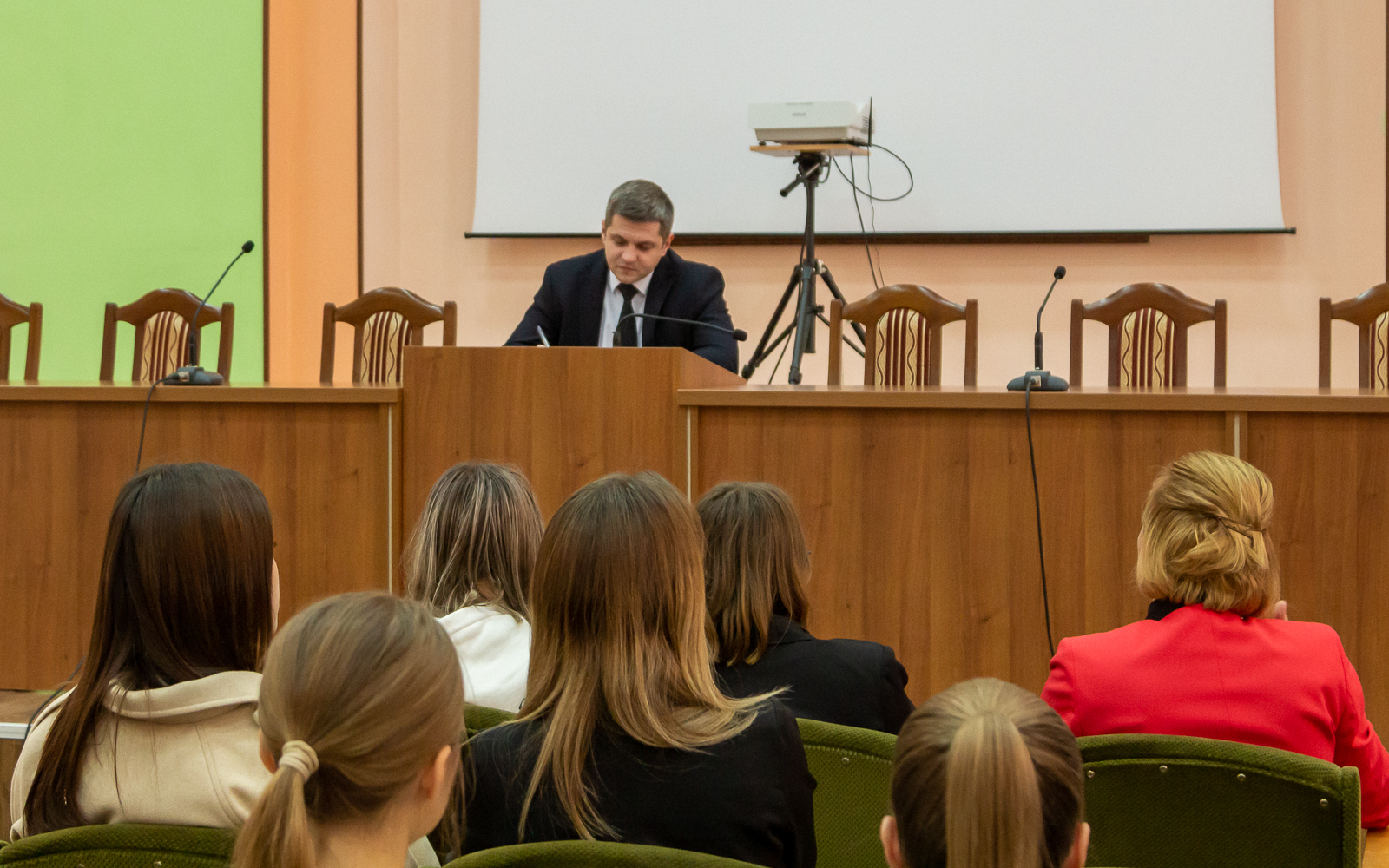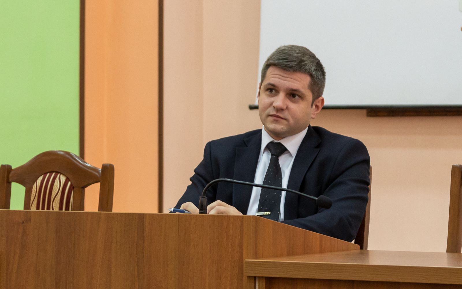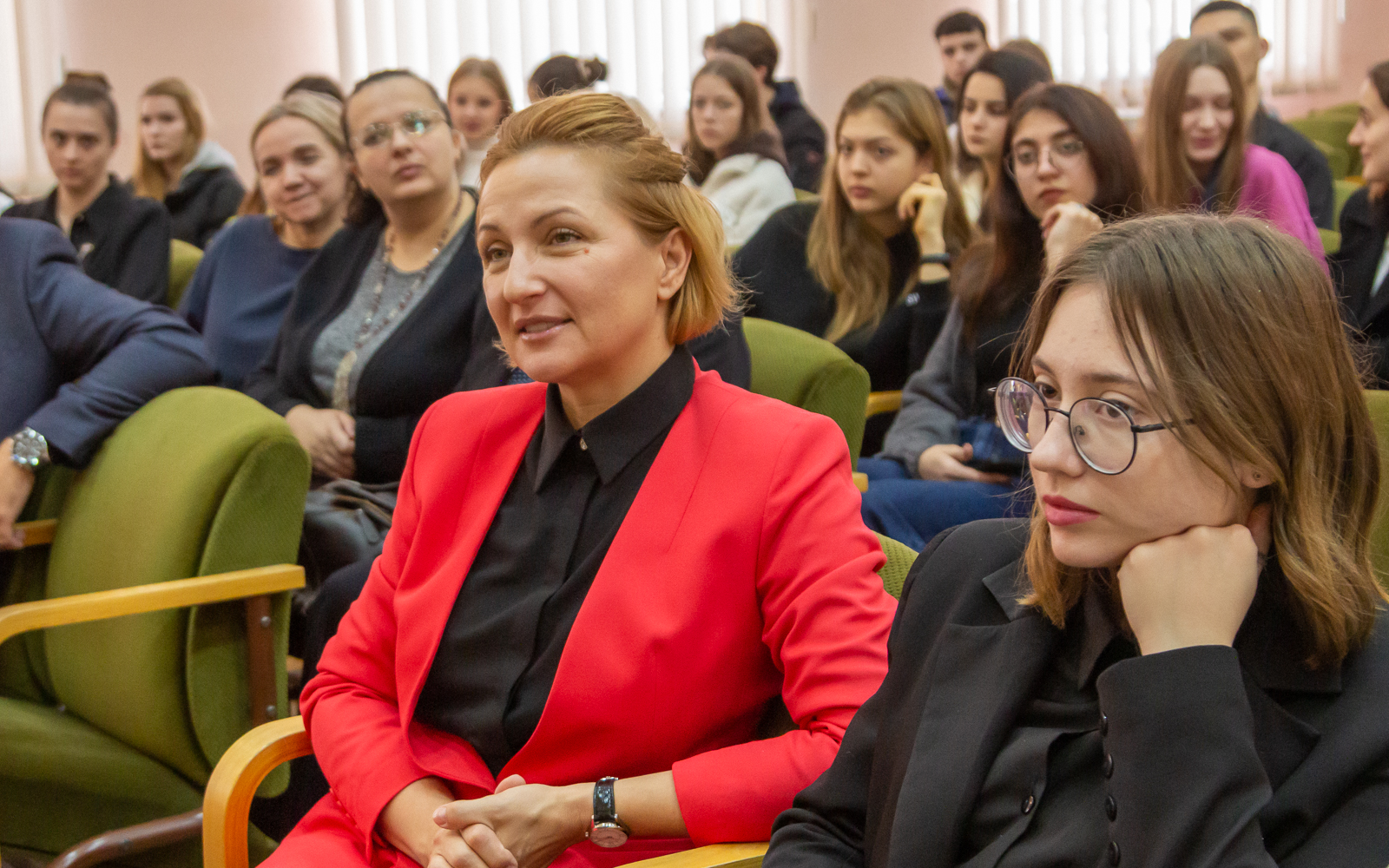 Министр цифрового развития, связи и массовых коммуникаций ПМР А.В. Димитрогло и заместитель министра М.А. Кравец встретились с преподавателями и студентами второго курса кафедры журналистики, рекламы и связей с общественностью филологического факультета. Встреча проходила 4 декабря в актовом зале главного корпуса ПГУ.