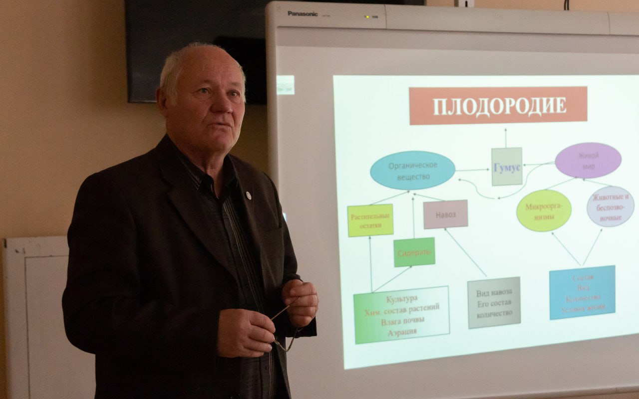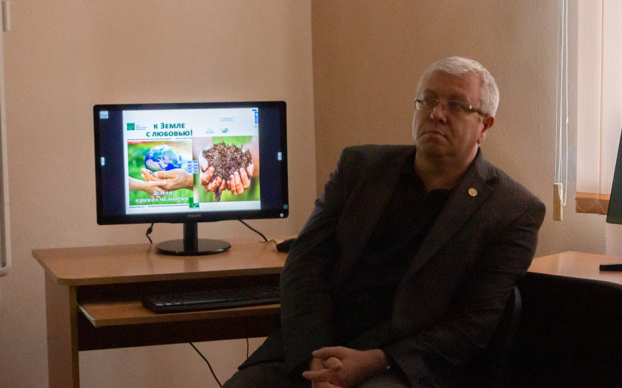 Открывая встречу, директор ПЦ РГО, заместитель декана по научной работе ЕГФ кандидат географических наук, доцент В.Г. Фоменко подчеркнул ценность почвы как природного ресурса, который, несмотря на плодородие, теряет свои свойства из-за человеческой деятельности и эрозии. Владимир Григорьевич отметил, что почвы требуют постоянного внимания и изучения рациональных методов природопользования. Для участников был показан двухминутный образовательный мультфильм, который наглядно продемонстрировал значение почвы и историю земледелия.