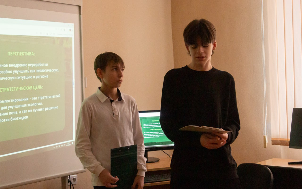 Учащиеся 10 класса Тираспольской СШ №11 Тимур Абдурахимов, Максим Власенко и Даниил Колесник подготовили доклад о биологических отходах и их использовании в почве. Ребята не только подчеркнули, что стагнация гумусового слоя, недостаток органических удобрений, несанкционированные свалки и эрозия создают экологическую нагрузку на регион, но и предложили меры по компостированию и защите почвы даже при ограниченном бюджете.