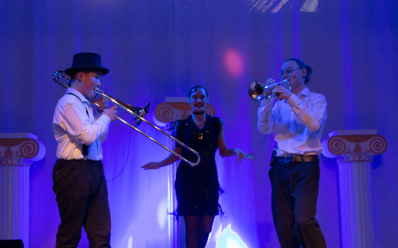 Прокопий Решетников в выступлении «Музыка – это не просто искусство, музыка – это жизнь» вместе со своим коллегой-музыкантом исполнили на тромбоне джазовую музыкальную композицию, под которую танцевала девушка в костюме 1960-х, отсылающим к эпохе джаза.