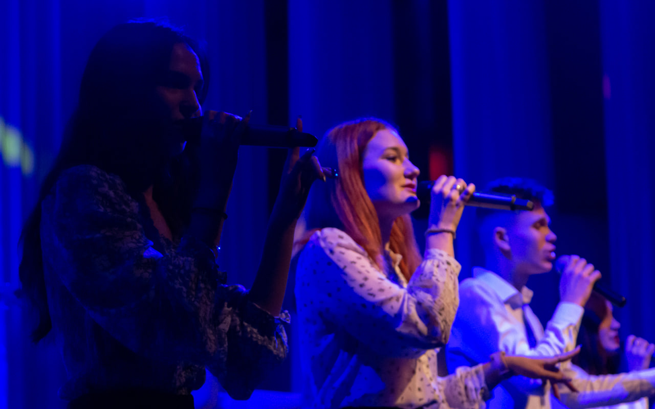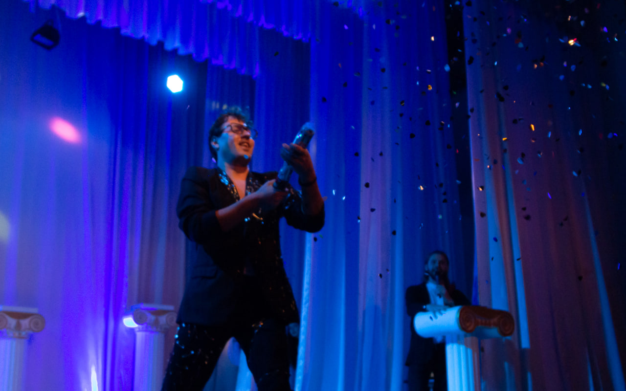Давид Левченко, чтобы скрасить ожидание, сыграл на трубе музыкальную композицию группы «Кино» «Видели ночь». Уже ставшая классикой музыка, не смогла удержать публику на месте. Группы поддержки, которые во время всего конкурса активно поддерживали своих конкурсантов громкими возгласами и аплодисментами, шарами и плакатами, начали танцевать и водить мини-хороводы. Выступление «Гаудеамуса» и видеоролик, в котором конкурсанты отвечали на разные вопросы, также помогли создать хорошее настроение.