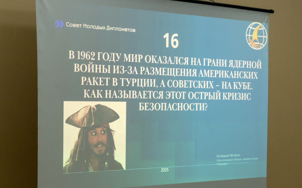 Представители Совета молодых дипломатов и ведущие квиза поздравили участников игры и пригласили вступить в ряды членов Совета молодых дипломатов. Для победителей это будет сделать проще: не нужно писать эссе о международных отношениях, достаточно отправить своё резюме.