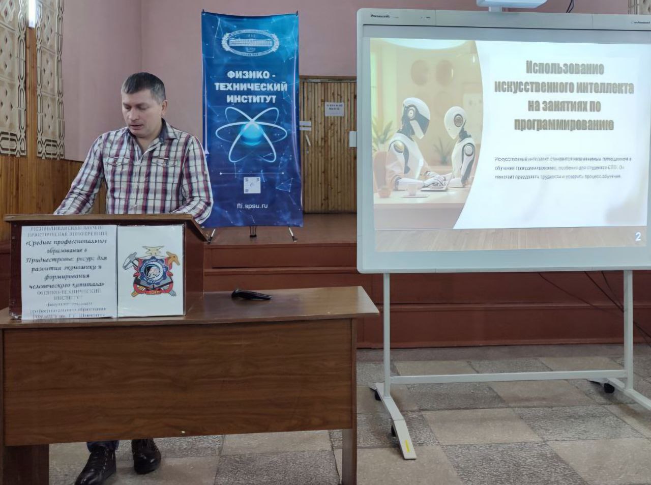 Доклад старшего преподавателя кафедры электроэнергетики и машиностроения Александра Анатольевича Зуева был посвящен теме использования искусственного интеллекта на занятиях по программированию. Были рассмотрены возможности применения ИИ-инструментов для индивидуализации обучения, развития алгоритмического мышления обучающихся и повышения мотивации к освоению программных дисциплин.