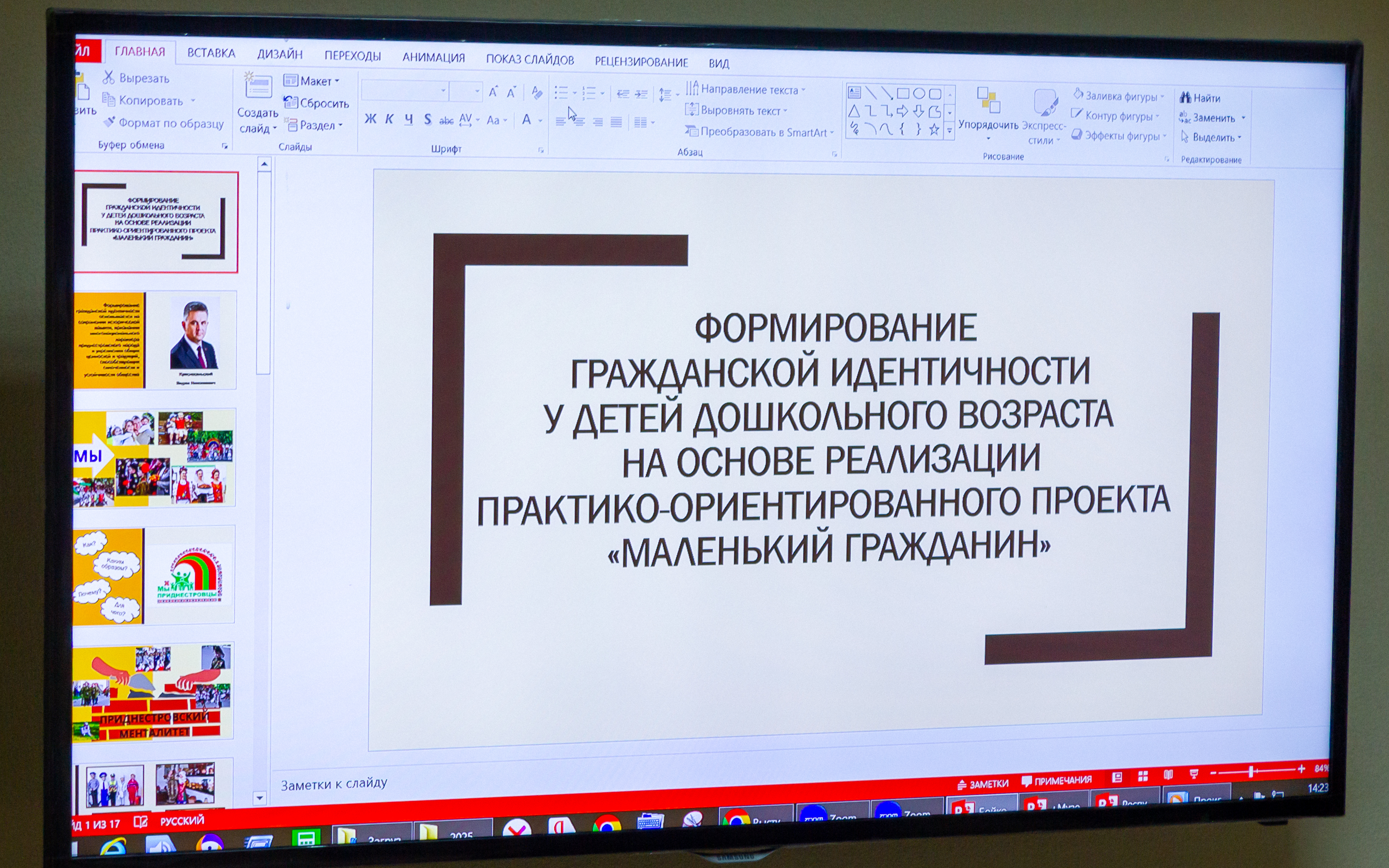 Практический аспект формирования личности был раскрыт в выступлении главного специалиста Управления народного образования г. Тирасполь Н.И. Поддубной. Наталья Ивановна представила опыт реализации проекта «Маленький гражданин», направленного на формирование гражданской идентичности у дошкольников. Проект помогает детям пройти путь познания от собственного «Я» к пониманию многонационального «Мы», воспитывая любовь к Родине и уважение к истории края. Через игру, музейную педагогику и участие в фестивалях педагоги закладывают фундамент «приднестровского менталитета», основываясь на сохранении исторической памяти и традиционных ценностях.