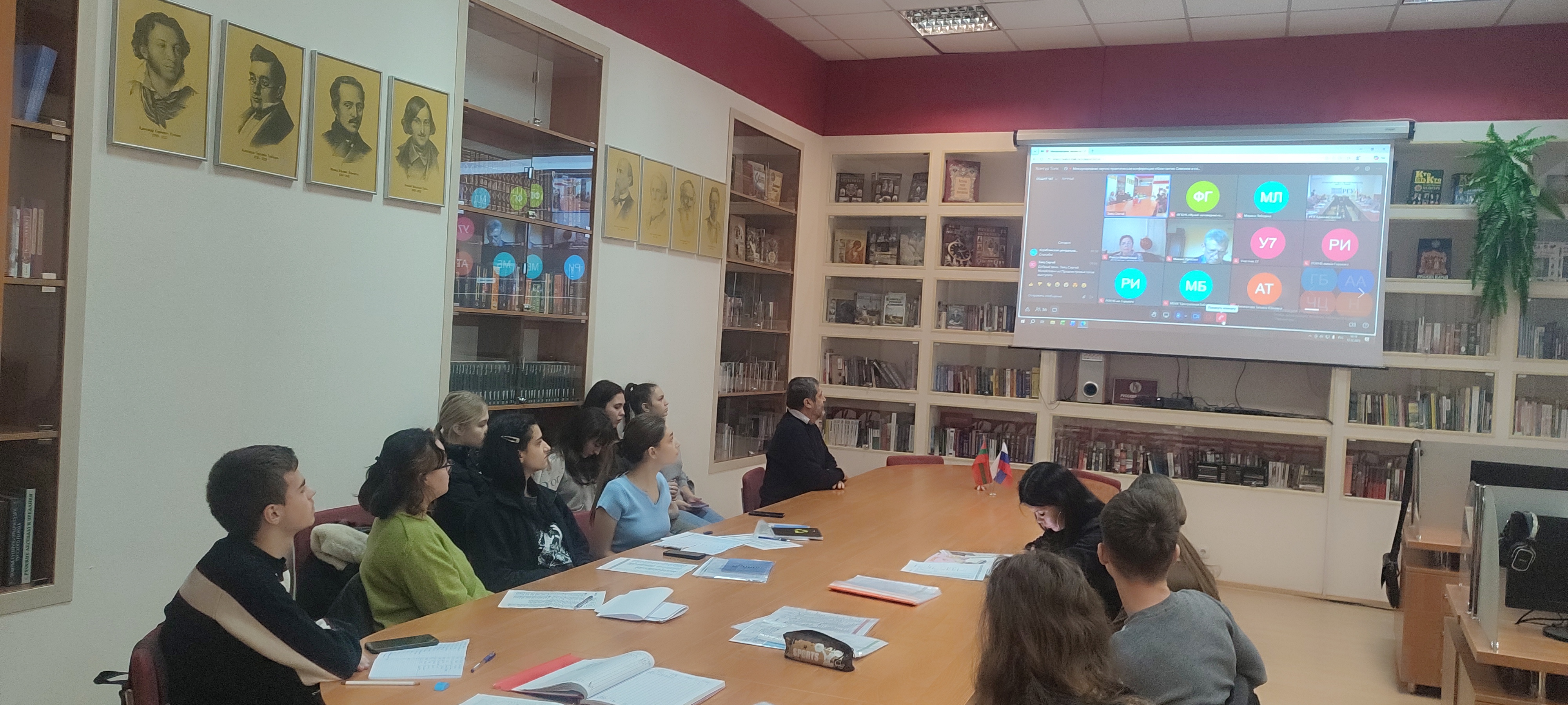 Русский центр Приднестровского государственного университета им. Т.Г. Шевченко активно участвует в международных конференциях по русской литературе, которые проходят в очно-заочном формате. 12 декабря произошло подключение к Международной научно-практической конференции «Константин Симонов и современность», посвященной 110-летию со дня рождения выдающегося писателя-фронтовика и Году защитника Отечества. Слушателями стали студенты-журналисты 1 курса и филологи 4 курса обучения. От университета с докладом «Поэтика Константина Симонова как лик Победы» выступил профессор кафедры русской филологии, доктор филологических наук, сопредседатель Тираспольского регионального отделения Союза писателей России Сергей Михайлович Заяц.