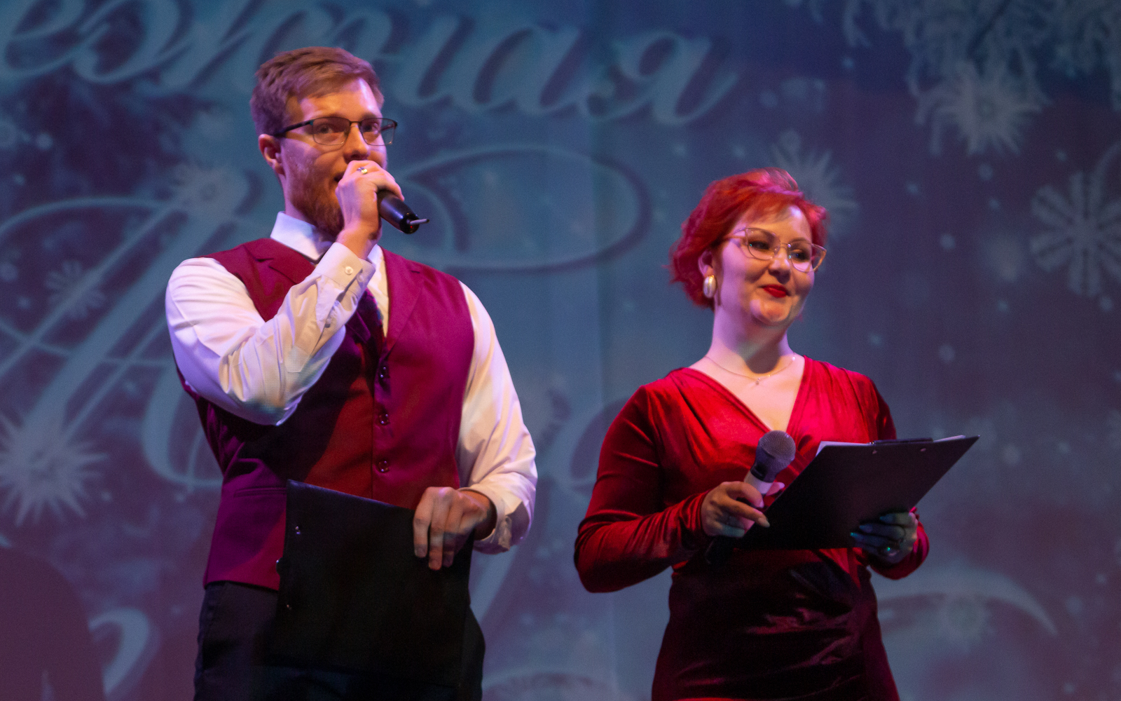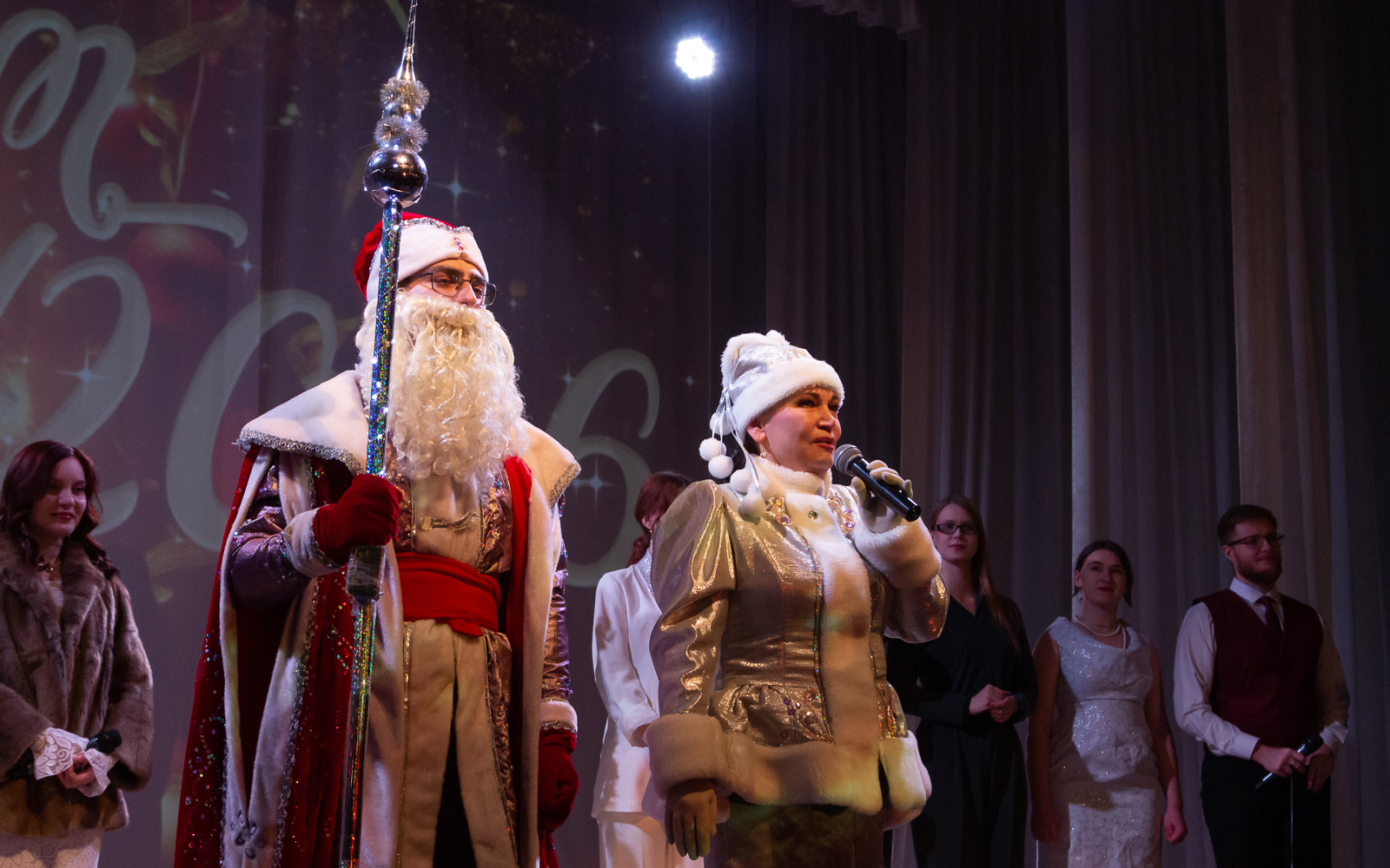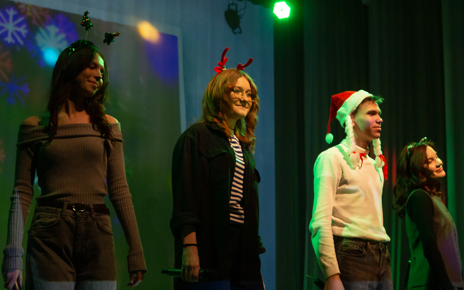 Зрители могли насладиться хореографической композицией в стиле рок-н-ролла, выступлением студентки факультета государственного управления и социально-гуманитарных наук М. Ражевой, получившей диплом II степени конкурса «Признание-2025» в номинации «Вокальное творчество». Мария недавно участвовала в российском телевизионном конкурсе «Ты супер!» и дошла до финала. На сцене КПЦ она исполнила «Застольную» из оперы Д. Верди «Травиата». Лирическое настроение вечеру придали Е. Гук и А. Бабаджанян, исполнившие дуэтом песню «Снег идёт», а также студент Медицинского института Д. Зевенюк, который спел песню из репертуара А. Малинина «Снежный вальс». Будущий медик тепло поздравил преподавателей и студентов с наступающими праздниками, пожелав всем, прежде всего, здоровья.