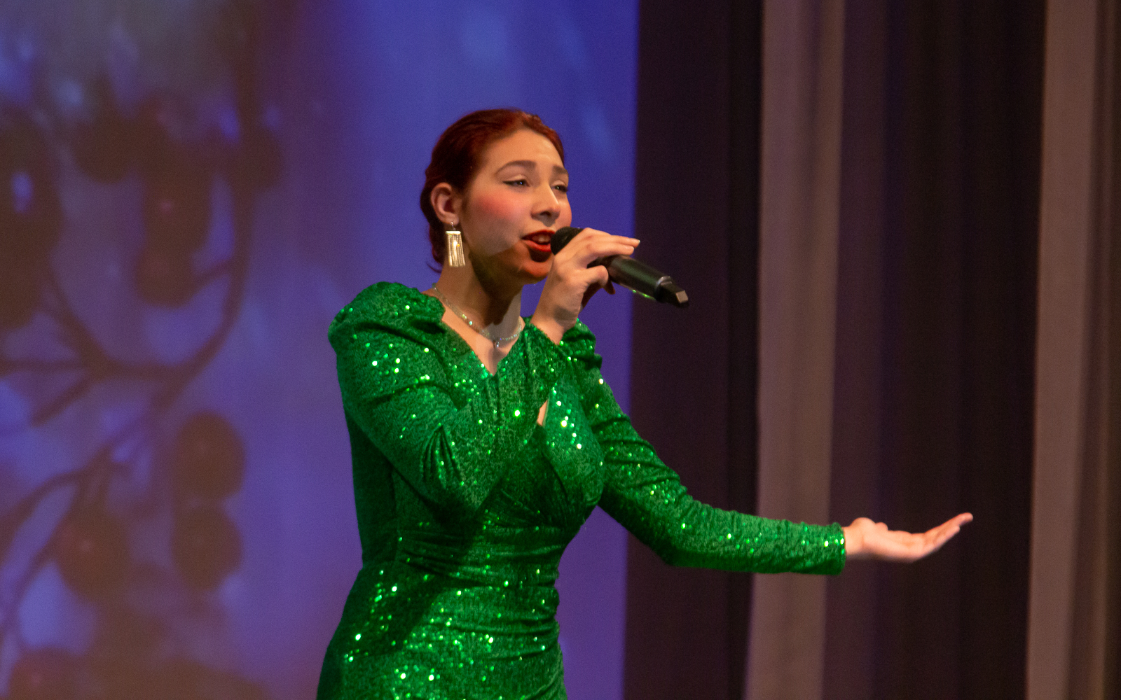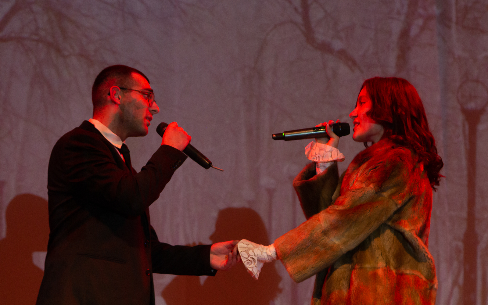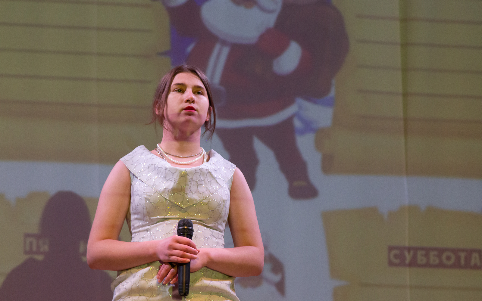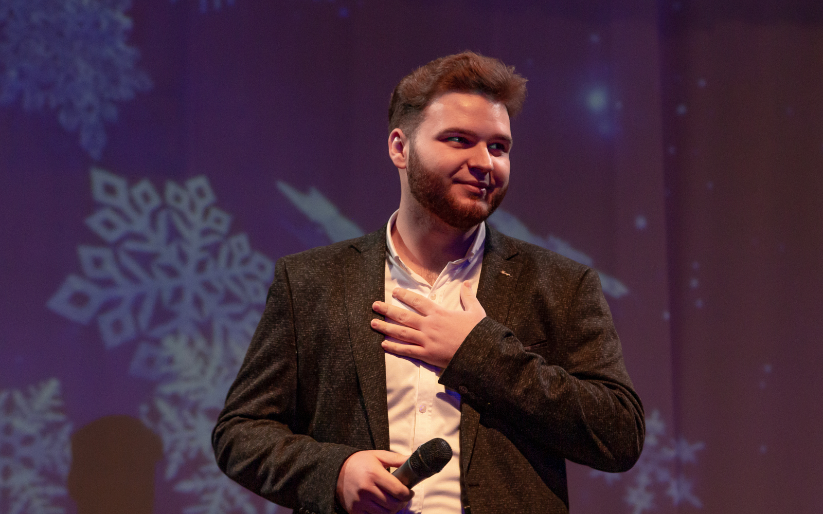 Зрители могли насладиться хореографической композицией в стиле рок-н-ролла, выступлением студентки факультета государственного управления и социально-гуманитарных наук М. Ражевой, получившей диплом II степени конкурса «Признание-2025» в номинации «Вокальное творчество». Мария недавно участвовала в российском телевизионном конкурсе «Ты супер!» и дошла до финала. На сцене КПЦ она исполнила «Застольную» из оперы Д. Верди «Травиата». Лирическое настроение вечеру придали Е. Гук и А. Бабаджанян, исполнившие дуэтом песню «Снег идёт», а также студент Медицинского института Д. Зевенюк, который спел песню из репертуара А. Малинина «Снежный вальс». Будущий медик тепло поздравил преподавателей и студентов с наступающими праздниками, пожелав всем, прежде всего, здоровья.