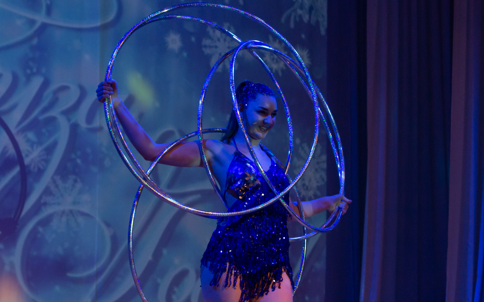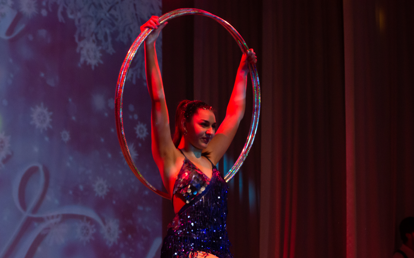 М. Подопригора в соответствующем костюме и гриме исполнила известную песню «Арлекино». Грацию и спортивную эстетику в канву новогоднего концерта внесли гимнастические выступления студентки факультета физической культуры и спорта Я. Янакиевой и студентки ФГУиСГН А. Казак. Творческий коллектив «Реванш» дополнил программу ярким хореографическим номером. Не обошлось и без доброго студенческого юмора: ребята подготовили тематическую сценку, в которой в лицах представили работу различных подразделений вуза – от учебной части до Управления хозяйственными службами и Управления по воспитательной работе и социально-психологической поддержке.