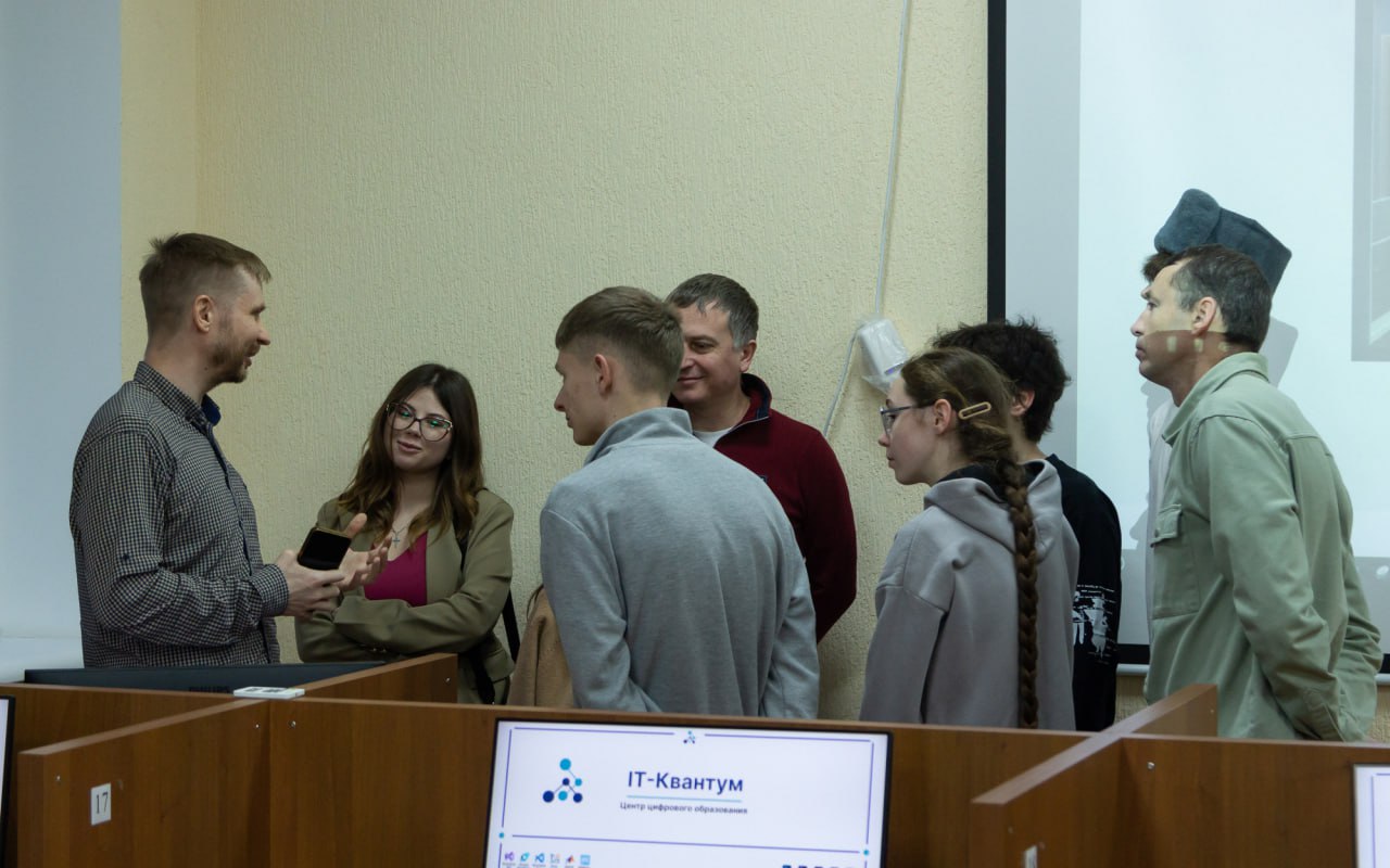 Гостей встречал руководитель «IT-Квантума» С.А. Крюков. В ходе общения со школьниками он помогал определить наиболее интересные для них направления и сферы, в которых ребята хотели бы получить практические навыки. Сергей Анатольевич отметил, что цель образовательно-практического центра не просто научить школьников, студентов и всех желающих пользоваться цифровыми технологиями, но и показать, как они устроены и как создаются. Таким образом, слушатели проводимых «IT-Квантумом» занятий не только работают с электронными схемами, роботами и датчиками, но и получают инженерные навыки.