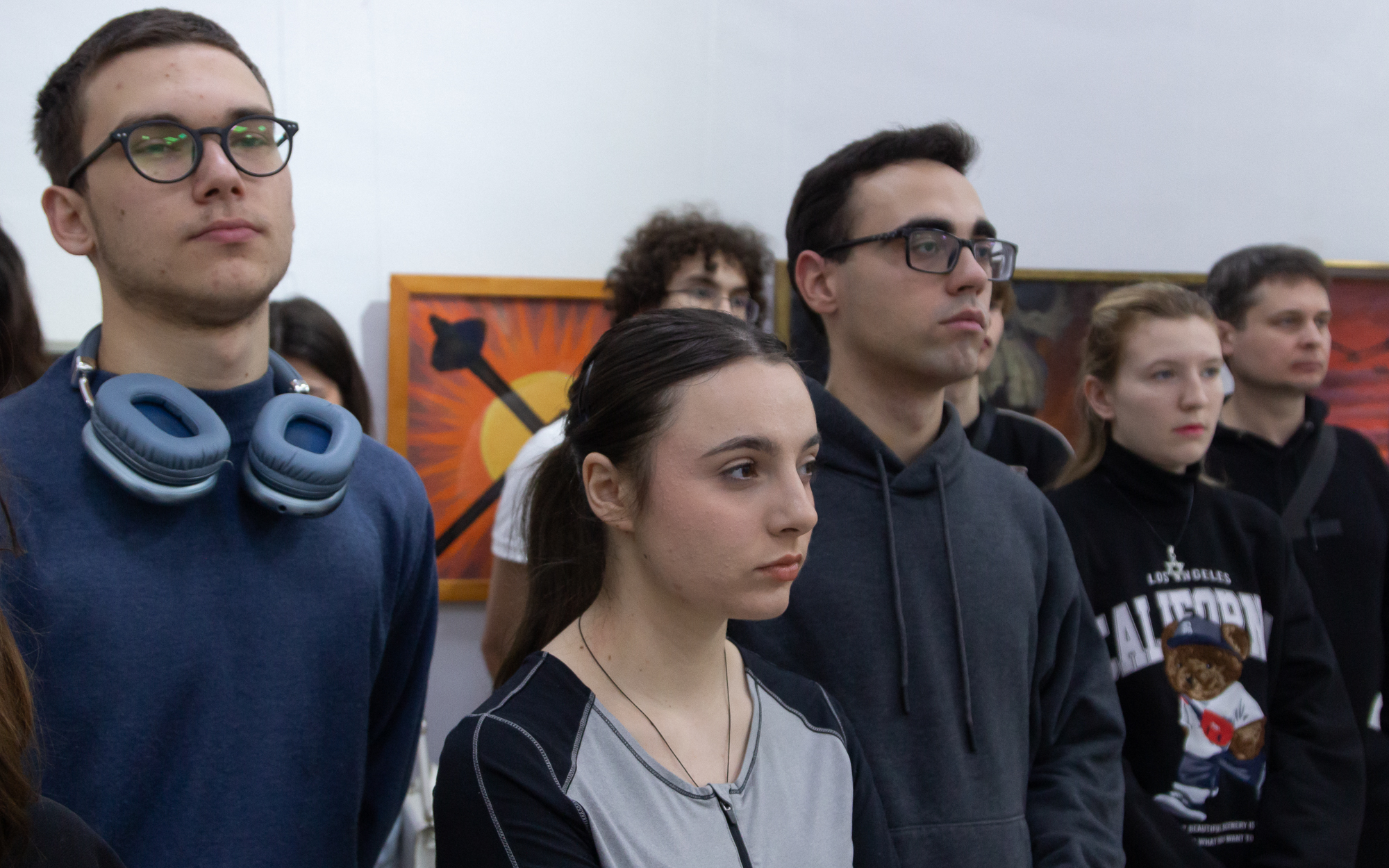 Члены Объединённого студенческого совета факультетов и представители студенческого актива университета 13 февраля побывали на открытии выставки «Перекрестки смыслов» в Музее изобразительного искусства Культурно-просветительского комплекса «Музеи и библиотеки г. Тирасполь». Экспозиция работ заслуженного деятеля искусств ПМР Г.М. Зыкова приурочена к 95-летию со дня его рождения.