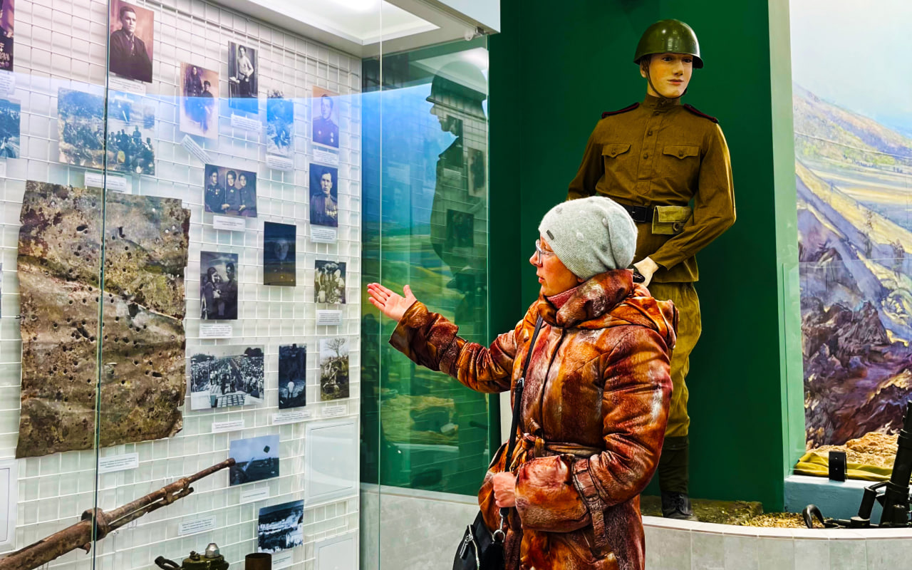 Началась экскурсия с зала о Великой Отечественной войне, где представлены документы, фотографии, личные вещи подпольщиков, фронтовиков и тружеников тыла.