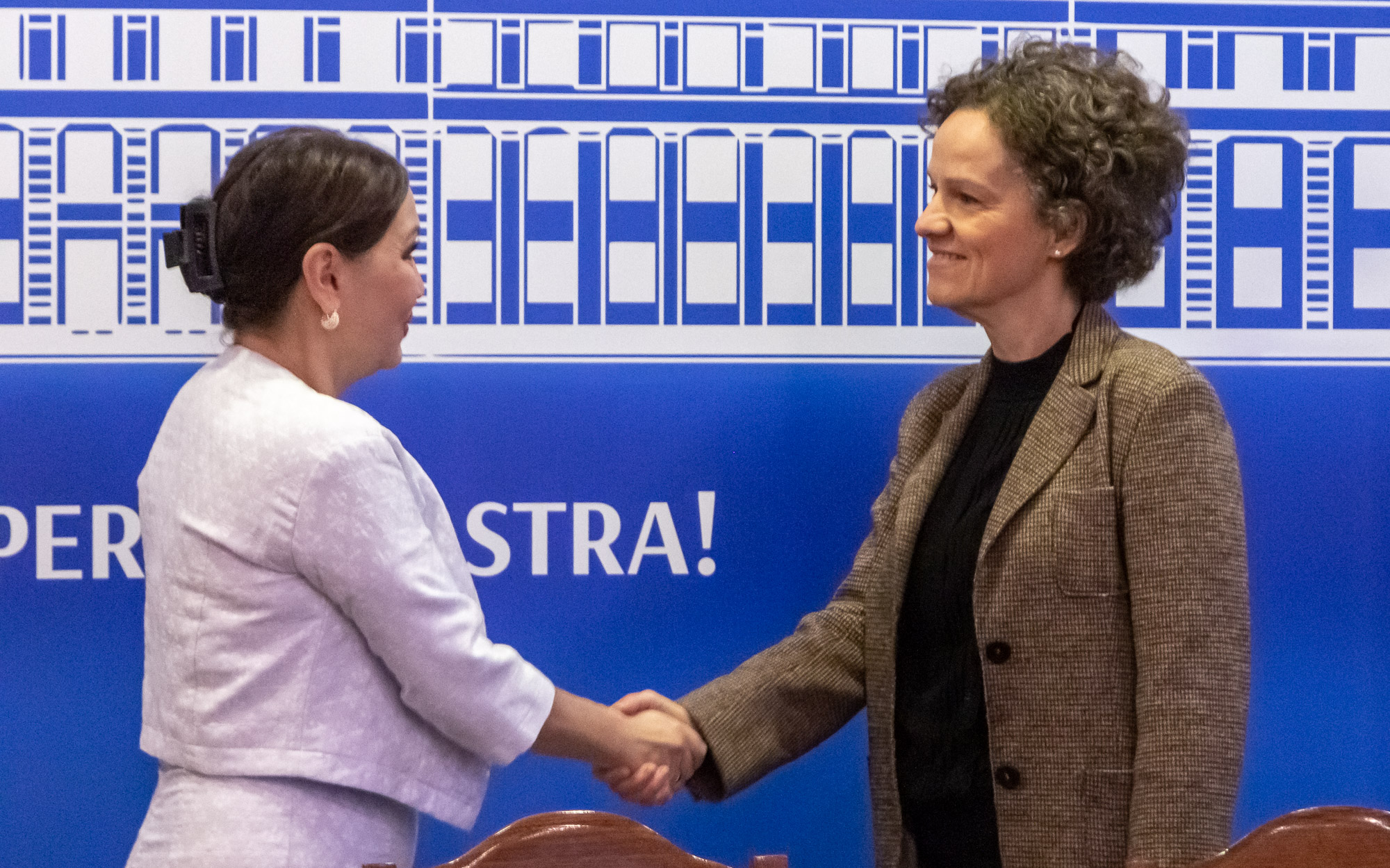 Руководитель вуза также отметила, что Приднестровский госуниверситет более 30 лет работает по государственным образовательным стандартам Российской Федерации, при этом активно развивая профессиональные связи с вузами-партнерами из дальнего зарубежья и реализуя программы по сетевым формам обучения (совместные образовательные программы с различными университетами). Л.В. Скитская акцентировала внимание на том, что ПГУ выдает два диплома об образовании: приднестровского и российского образца. По желанию выпускника университет может выдать также диплом международного образца, который признается странами Евросоюза.