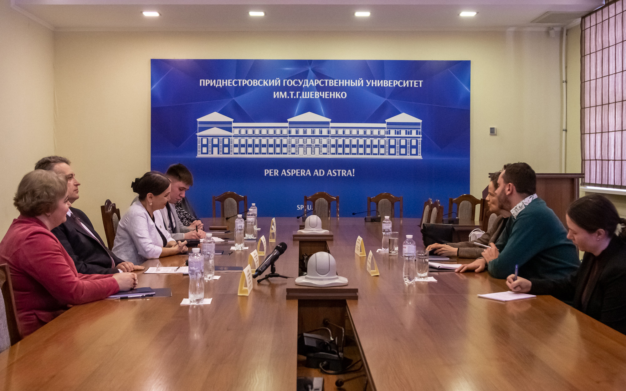 Приднестровский государственный университет им. Т.Г. Шевченко 20 февраля с рабочим визитом посетила делегация Посольства Франции в Республике Молдова. Встреча руководства вуза с иностранной делегацией проходила в конференц-зале главного корпуса.