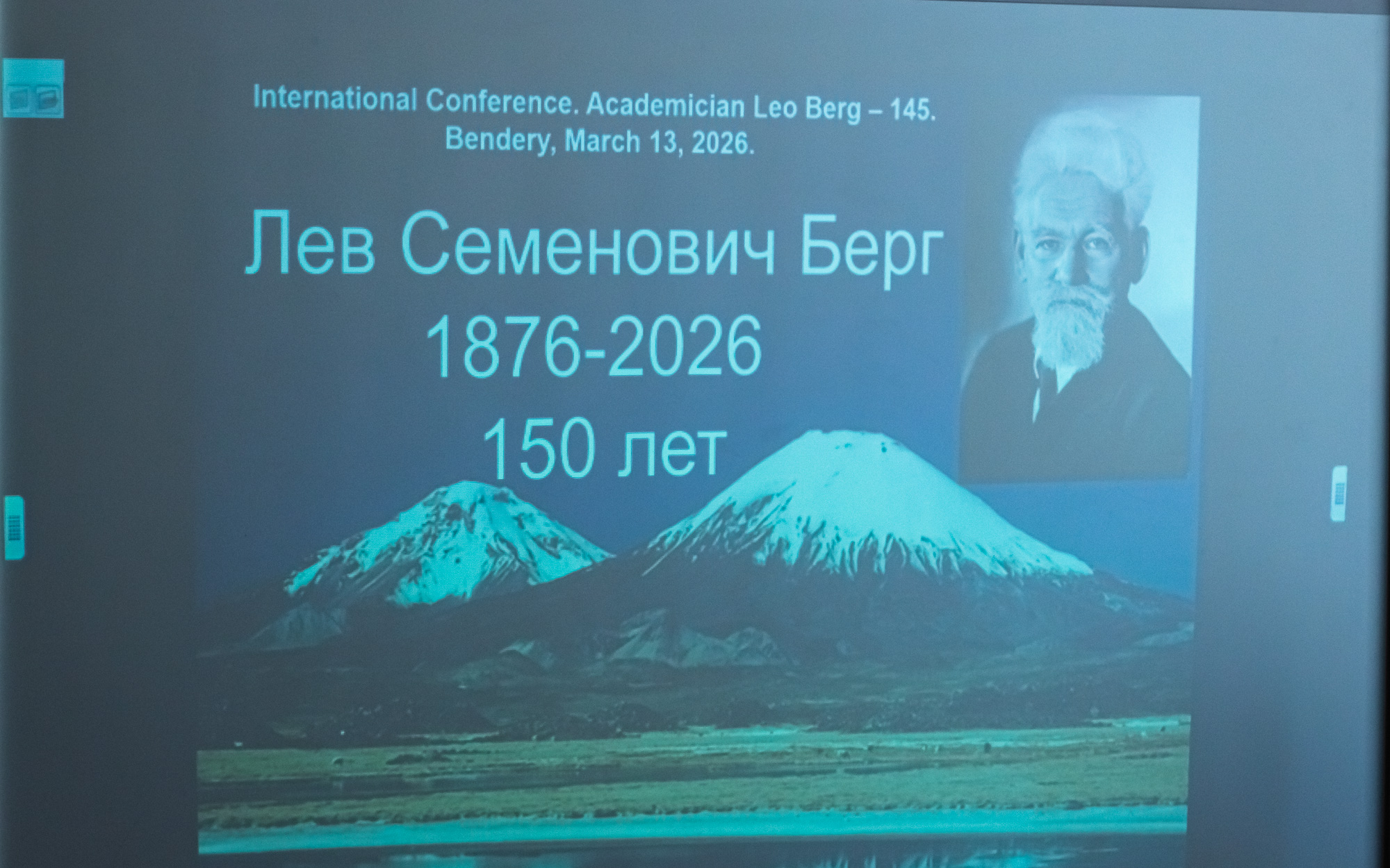 В.Г. Фоменко продолжил свое выступление докладом о научном и мемориальном наследии Л.С. Берга. Лев Семенович Берг – уроженец Бендер, ученый, внесший значительный вклад в ихтиологию, гидрологию и организацию российской и советской географической науки. В течение 10 лет он возглавлял Географическое общество Советского Союза. Л.С. Берг представил свое видение эволюционного процесса, написал фундаментальные труды в области геоморфологии, климатологии и ихтиологии, был организатором и участником многочисленных научных экспедиций. Память об ученом увековечена в названиях географических объектов, улиц, учебных заведений, на памятных марках, а в Бендерах и Кишиневе есть музеи Л.С. Берга.