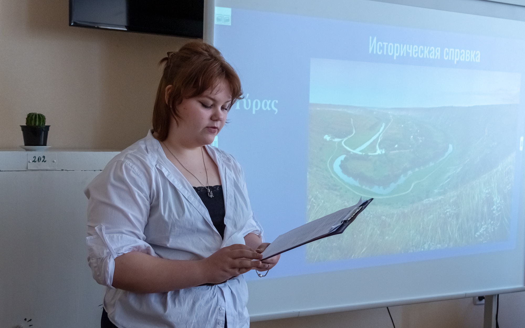 Ученица 8 класса Тираспольского общеобразовательного теоретического лицея К. Тараненко представила Днестр как природное и историческое сокровище нашей республики. Она напомнила, что за свою историю Днестр не раз менял свое название. Греки называли его Тирас, скифо-иранцы – Донастрис. Особое внимание в своем докладе К. Тараненко уделила историческому наследию: на берегах Днестра сохранились выдающиеся крепости – Хотинская, Сорокская и Бендерская, каждая из которых сыграла важную роль в обороне региона. Природной жемчужиной нашей реки является Днестровский каньон – один из самых протяженных в Европе.