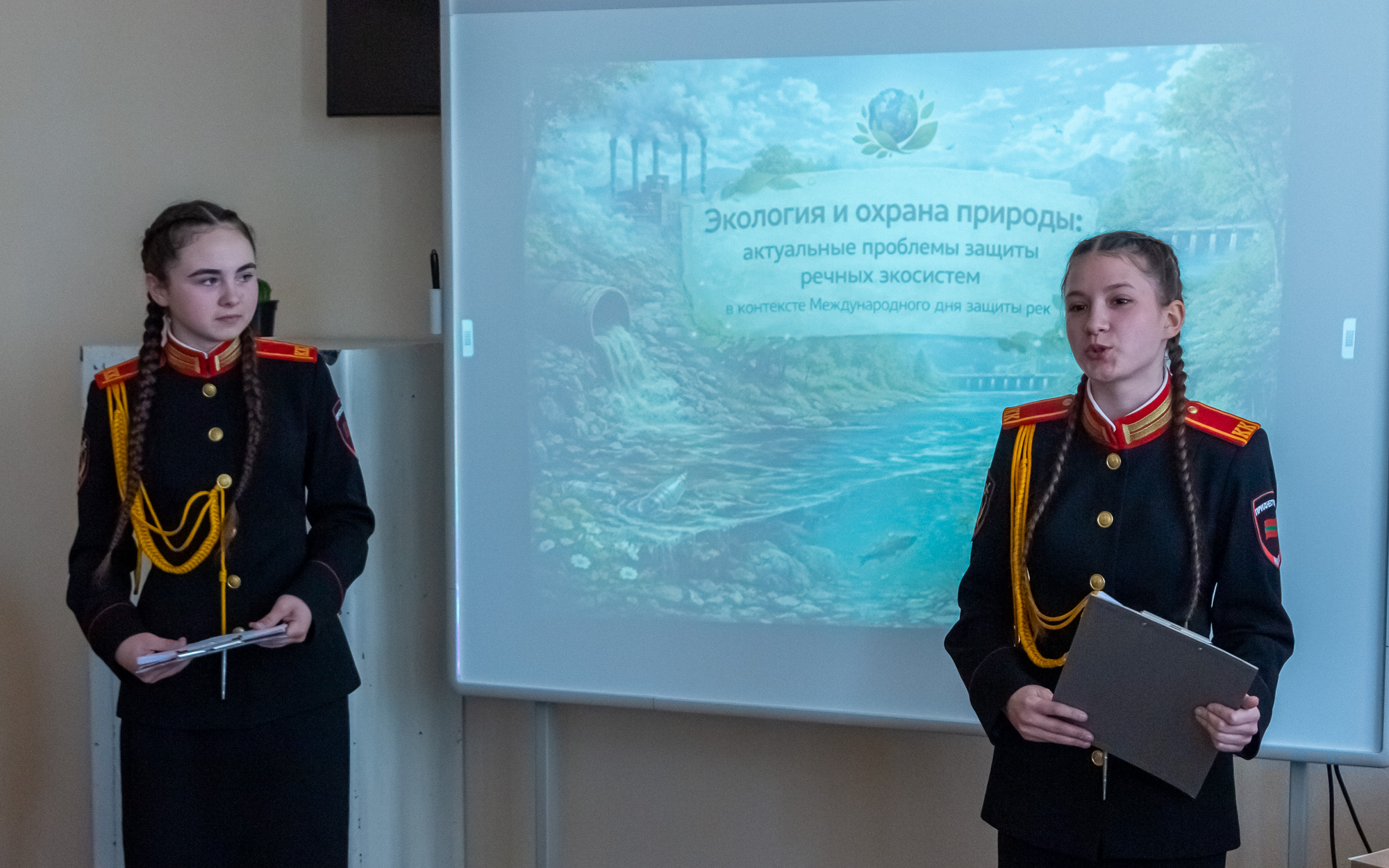 Кадеты 10 класса Республиканского кадетского корпуса Д. Яковлева и Л. Стынкарь рассказали об актуальных проблемах защиты речных экосистем. Согласно приведенным данным, реки занимают менее 1% суши, но служат домом для 10% всех видов экосистем, и сегодня эти экосистемы критически уязвимы. На примере Днестра кадеты показали, как бытовые стоки, пластик и удобрения нарушают природный баланс. Ребята считают, что начинать защиту рек надо с простых, но важных шагов – уборки мусора и экологической ответственности каждого.