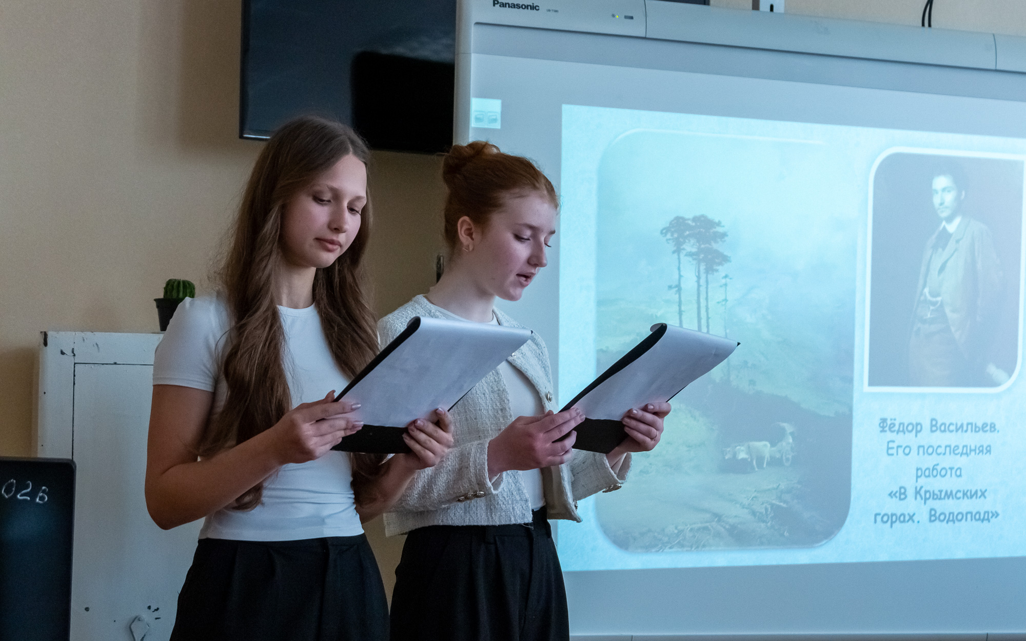Завершающим выступлением стала красочная презентация учащихся 10 класса Тираспольской СШ № 2 К. Попова и А. Филимончук на тему образа водопада в искусстве. В восточной живописи водопад является символом связи неба и земли и очищения души, а в европейском романтизме – воплощением возвышенной, пугающей мощи природы. В одних произведениях вода становится стихией, в других – частью лирического пейзажа. В современном кино водопад превратился в активный элемент сюжета, создающий напряжение и символизирующий внутреннюю трансформацию героя.