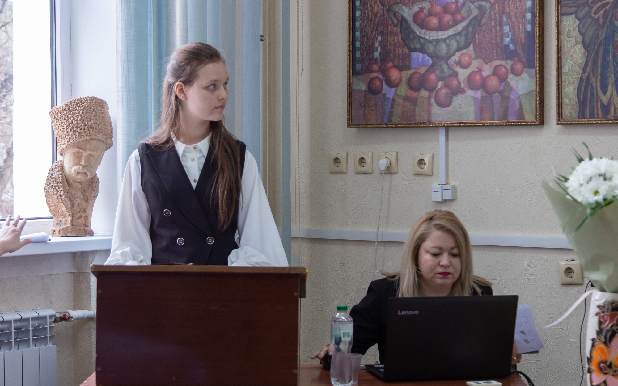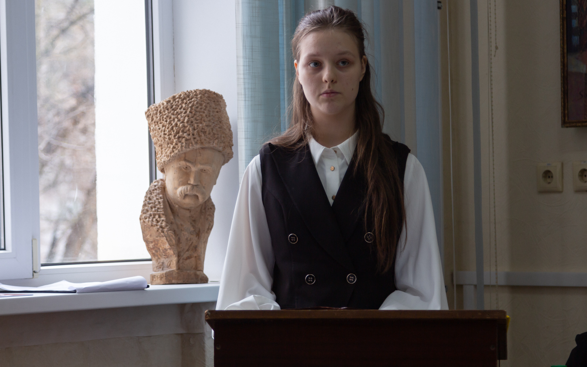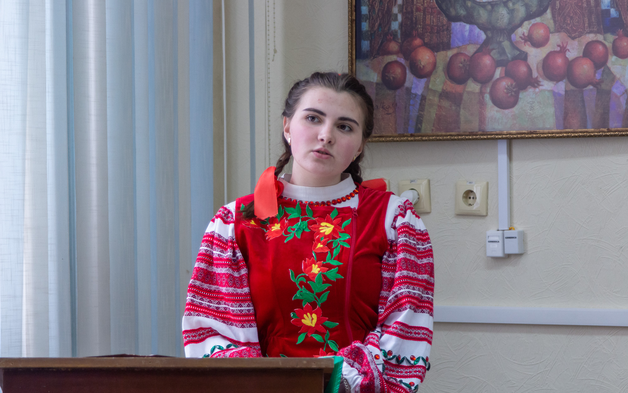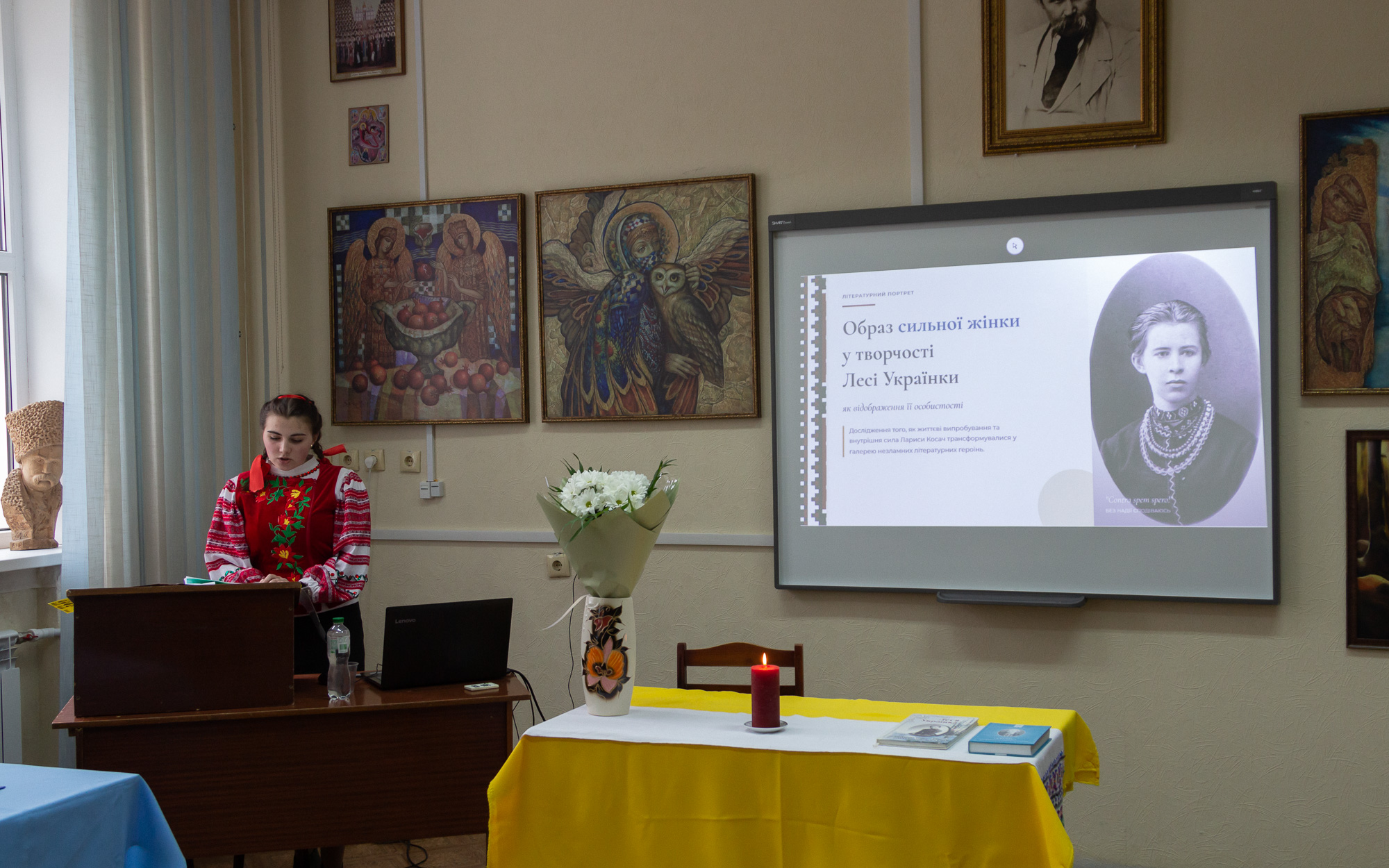 Ученица 9 класса Первомайской средней школы № 2 Я. Власова рассказала о полной борьбы и творчества жизни Леси Украинки. Писательница много занималась саморазвитием, благодаря чему стала одной из самых образованных женщин Европы того времени, увлекалась музыкой, живописью, литературой. С детства она тяжело болела туберкулезом костей, но болезнь ее не сломала, лишь закалила характер – вместо того, чтобы плакать, она выбирала смех, превращая боль в искусство и отражая ее в своих произведениях.