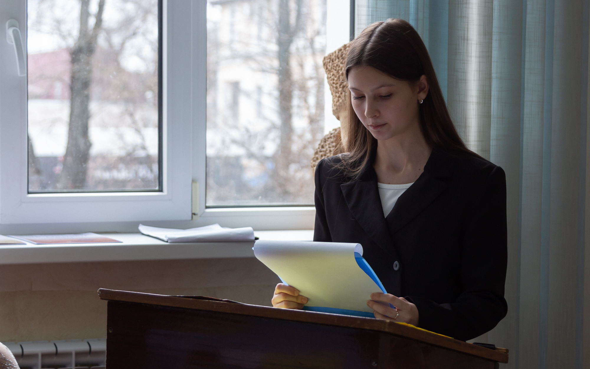 Ученица Тираспольской средней школы № 5 М. Кучияш подготовила доклад на тему «Я выйду сама против бури…», раскрывающий лирику борьбы, национальной гордости в поэзии Леси Украинки. Прежде всего, в таких стихотворениях, как «В черную тучу забралась тоска моя», «И все-таки к тебе мысль несется», «Ангел мести» и др.