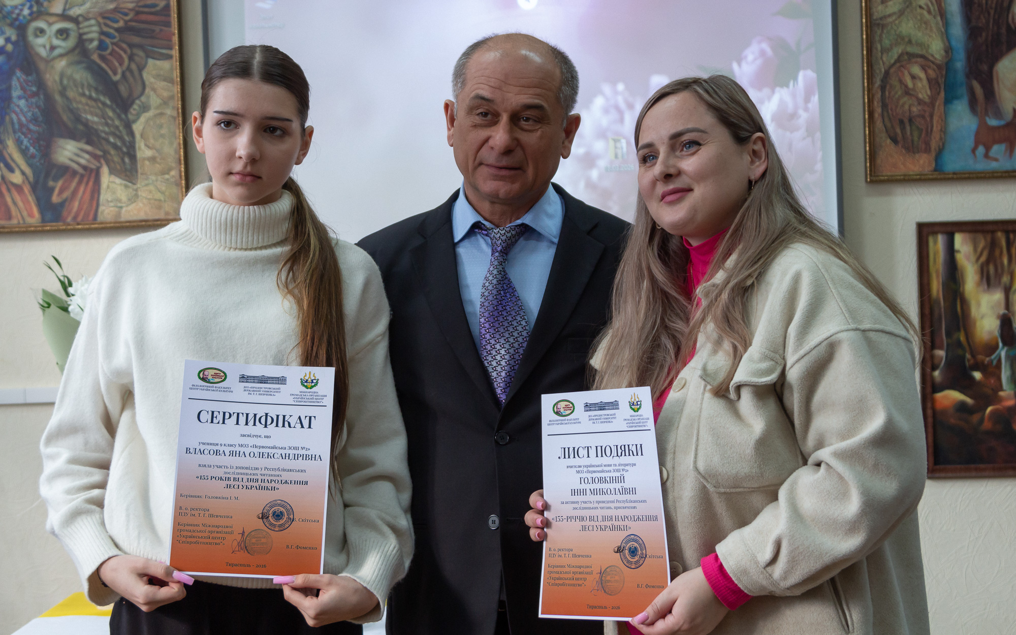 Тему образа сильной женщины в творчестве писательницы рассмотрела учащаяся 11 класса Республиканского украинского теоретического лицея-комплекса Д. Билак. Дарья отметила, что в произведениях «Лесная песня», «Кассандра», «Боярыня» классик украинской литературы бросила вызов патриархальным нормам, сделав своих героинь (Мавку, Кассандру, Оксану) нравственно сильными, верными себе и своей свободолюбивой сущности.