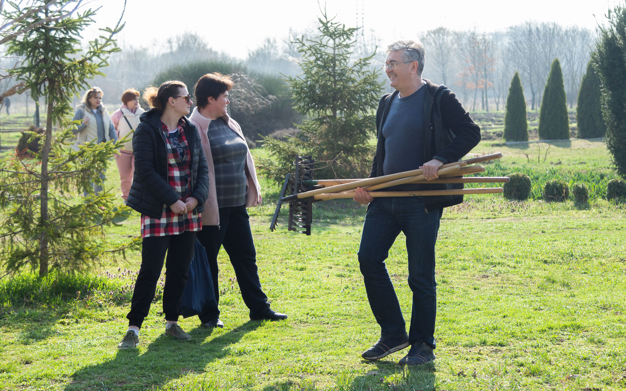 Фронт работ был по-настоящему обширным: участники субботника очищали территорию от сухих веток, копали ямы, высаживали деревья, чистили клумбы и проводили прополку. Работа шла под музыку, с шутками и отличным настроением.