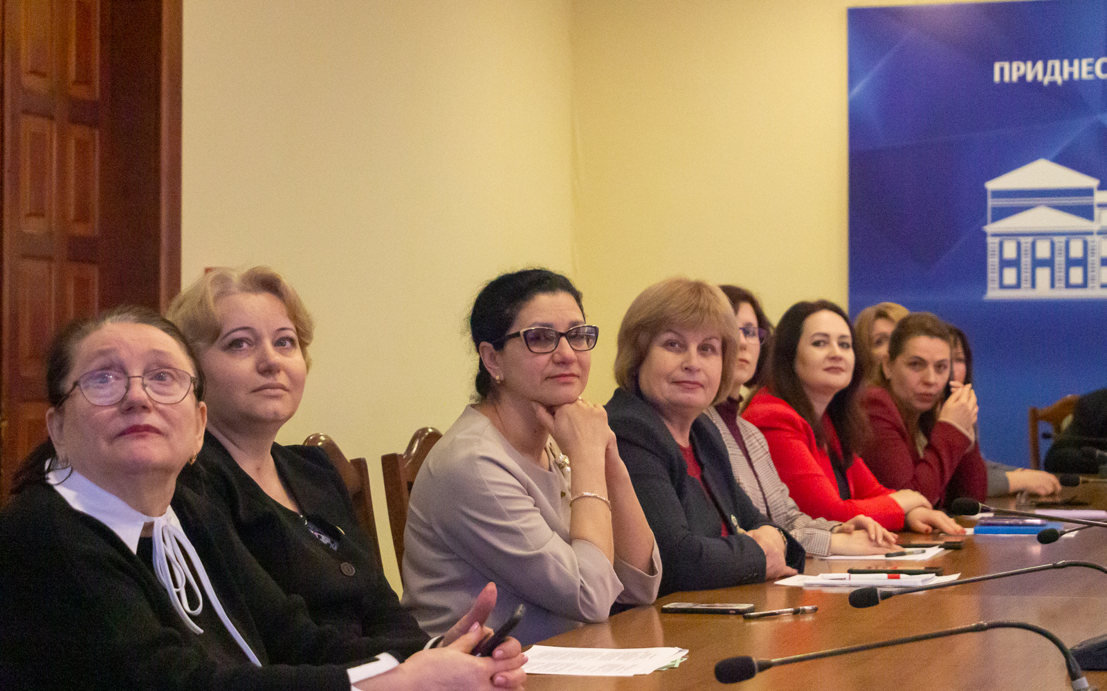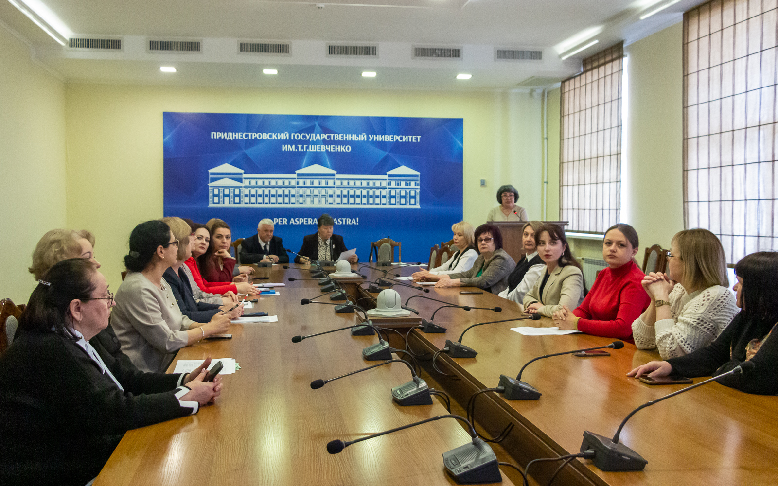 Круглый стол проходил в очном и онлайн форматах и объединил представителей Приднестровского научного центра Российской академии образования ПГУ им. Т.Г. Шевченко, Южно-Уральского государственного гуманитарно-педагогического университета, Академии психологии и педагогики Южного федерального университета, Тульского государственного педагогического университета им. Л.Н. Толстого, Белорусского государственного университета, педагогов общеобразовательных учреждений Приднестровья, преподавателей ПГУ. Модераторами выступили декан факультета педагогики и психологии канд. пед. наук, доцент Л.И. Васильева, директор Приднестровского научного центра РАО, заведующая кафедрой русской филологии д-р филол. наук, профессор Е.А. Погорелая. Ведущей круглого стола стала заместитель декана по научной работе факультета доцент Г.В. Никитовская.