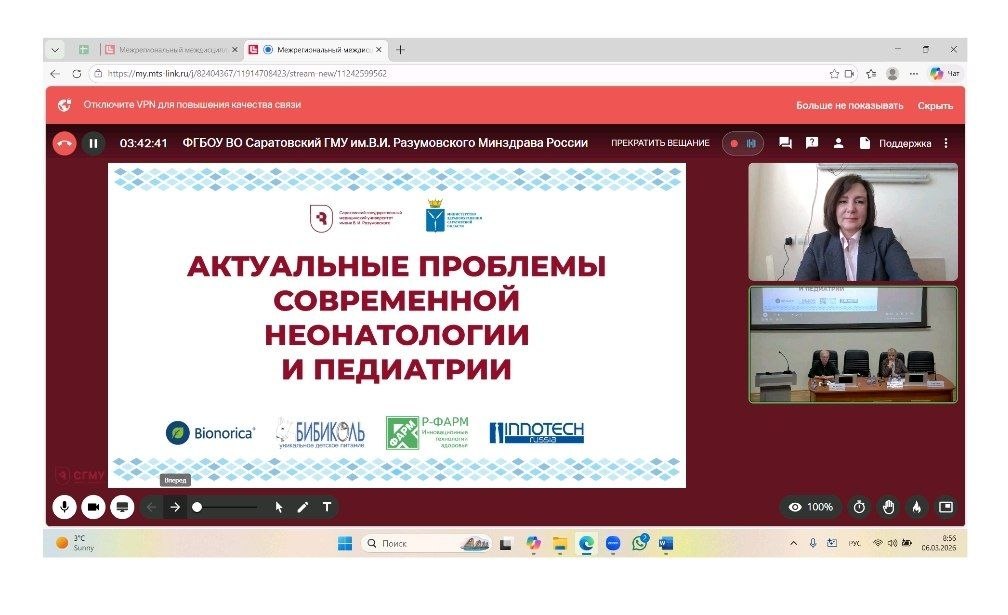 В первом квартале 2026 года сотрудники кафедры педиатрии, акушерства и гинекологии Медицинского института им. Н.В. Склифосовского продемонстрировали высокую научную активность, приняв участие в ряде научно-практических форумов. В марте они стали участниками Межрегионального междисциплинарного форума с международным участием «Актуальные проблемы современной неонатологии и педиатрии» в Саратовском государственном медицинском университете им. В.И. Разумовского, в рамках которого 5-6 марта состоялся конкурс молодых ученых. Заведующая кафедрой, врач акушер-гинеколог высшей категории, канд. мед. наук, доцент Оксана Сергеевна Чебан выступила с докладом «Репродуктивное здоровье приднестровской молодежи в контексте ВПЧ ассоциированных заболеваний: новые вызовы».