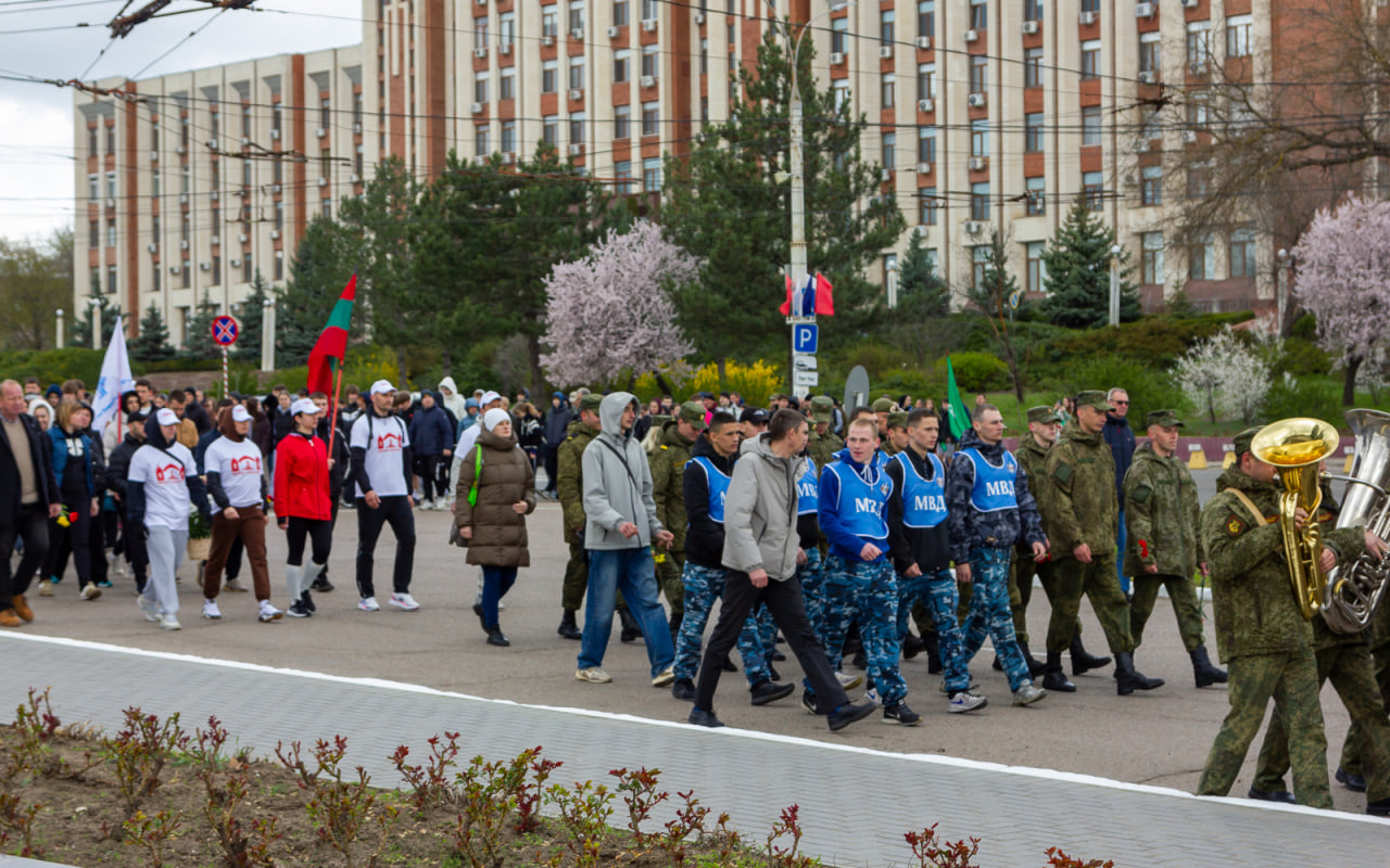 В сопровождении оркестра Главного штаба Вооруженных сил ПМР во главе с главным дирижером Народным артистом ПМР полковником Виталием Войновым присутствующие и спортсмены направились на традиционную легкоатлетическую эстафету.