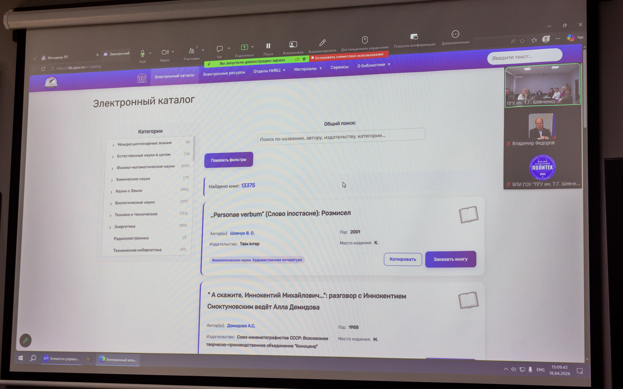 Повестку дня открыла заведующая кафедрой информационных технологий Физико-технического института доцент Ю.А. Столяренко, которая представила работу программного обеспечения «Планы» от лаборатории ММИС – ведущего разработчика в области автоматизации управления учебным процессом. Юлия Александровна подробно рассказала о цифровизации учебного процесса, автоматизации создания учебных документов и управления образовательными программами, продемонстрировала алгоритм работы с данным программным обеспечением и способы оперативного извлечения необходимых данных.