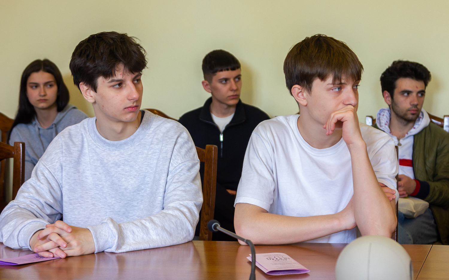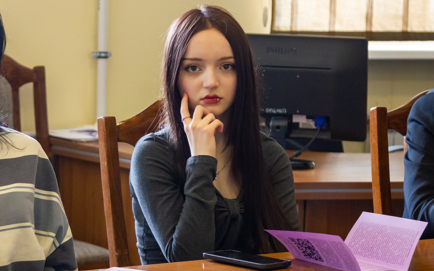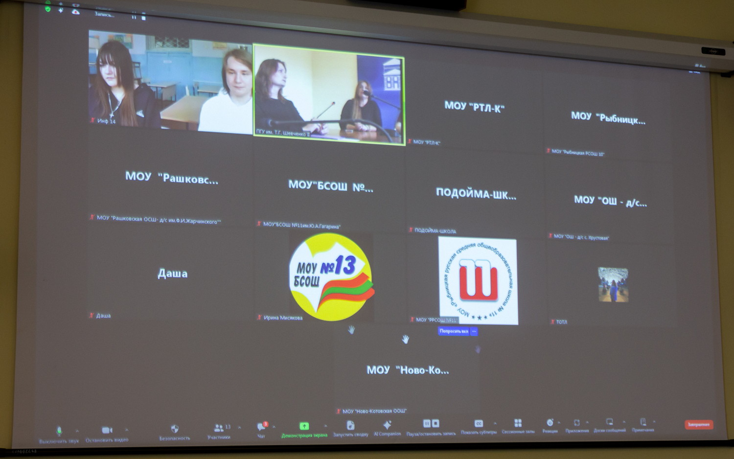 Встреча началась с демонстрации проморолика о ПГУ им. Т.Г. Шевченко как о современном центре подготовки профессионалов. Школьникам рассказали, что обучение в вузе ведется на трех официальных языках, а ежегодный выпуск составляет более двух тысяч специалистов. С 2023 года выпускники вместе с дипломом об окончании Приднестровского государственного университета получают дипломы, идентичные дипломам вузов Российской Федерации.